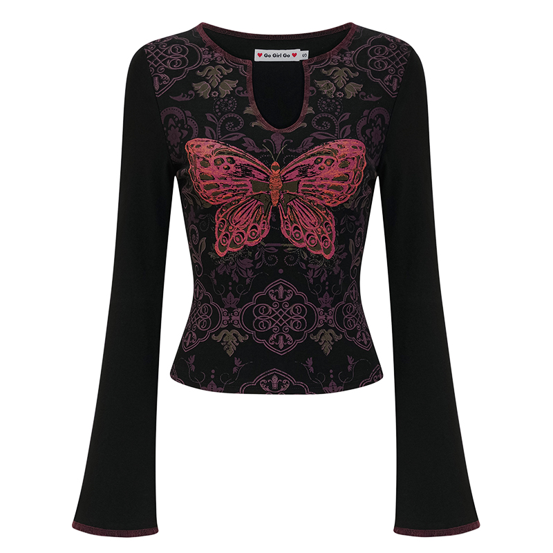 Slim Fit V- Neck Long Sleeve Butterfly Print Retro European, Women Top High-quality product featuring fall outfits women, fall fits, fall fashion and more. Modern design that fits the latest trends. Premium materials ensure durability and comfort. Order now for special offers! Product designed with attention to every detail. Suitable for all occasions and personal styles.