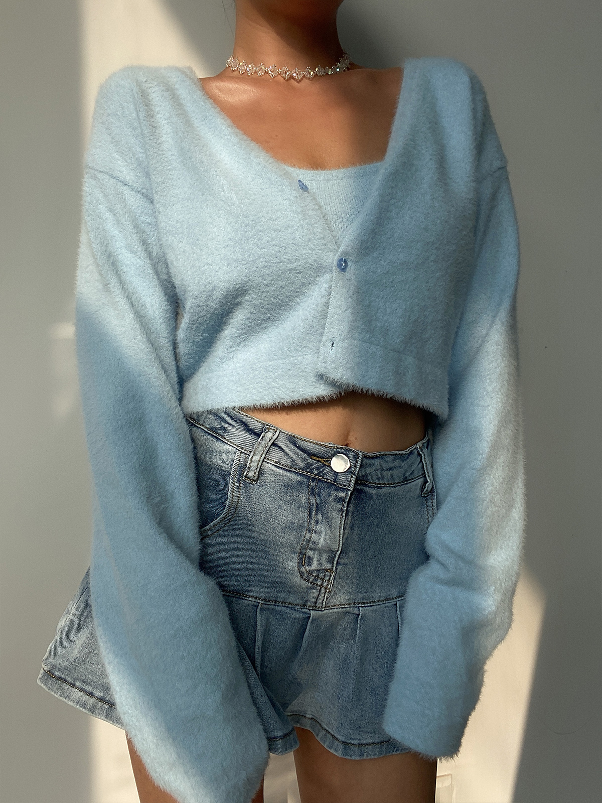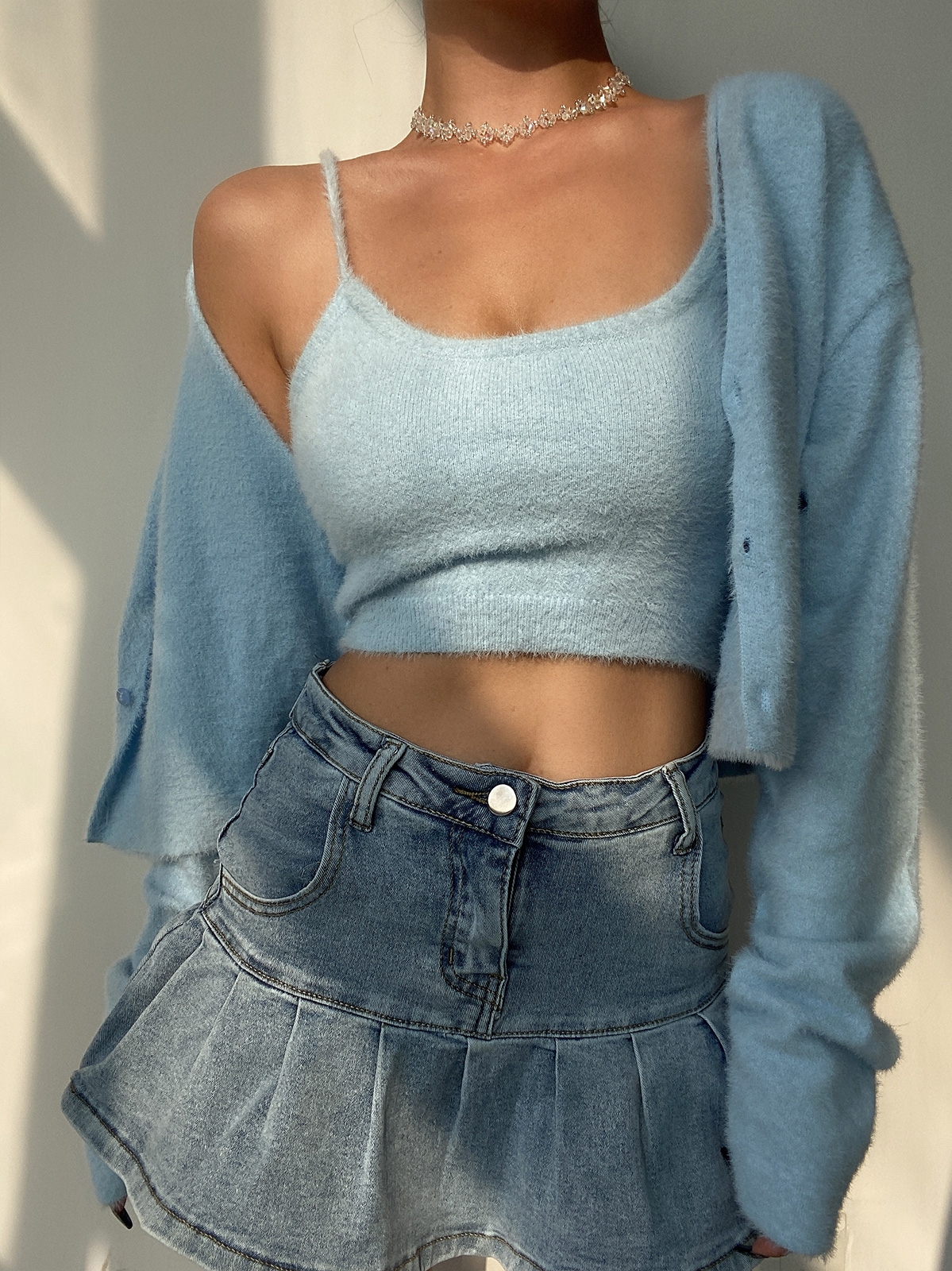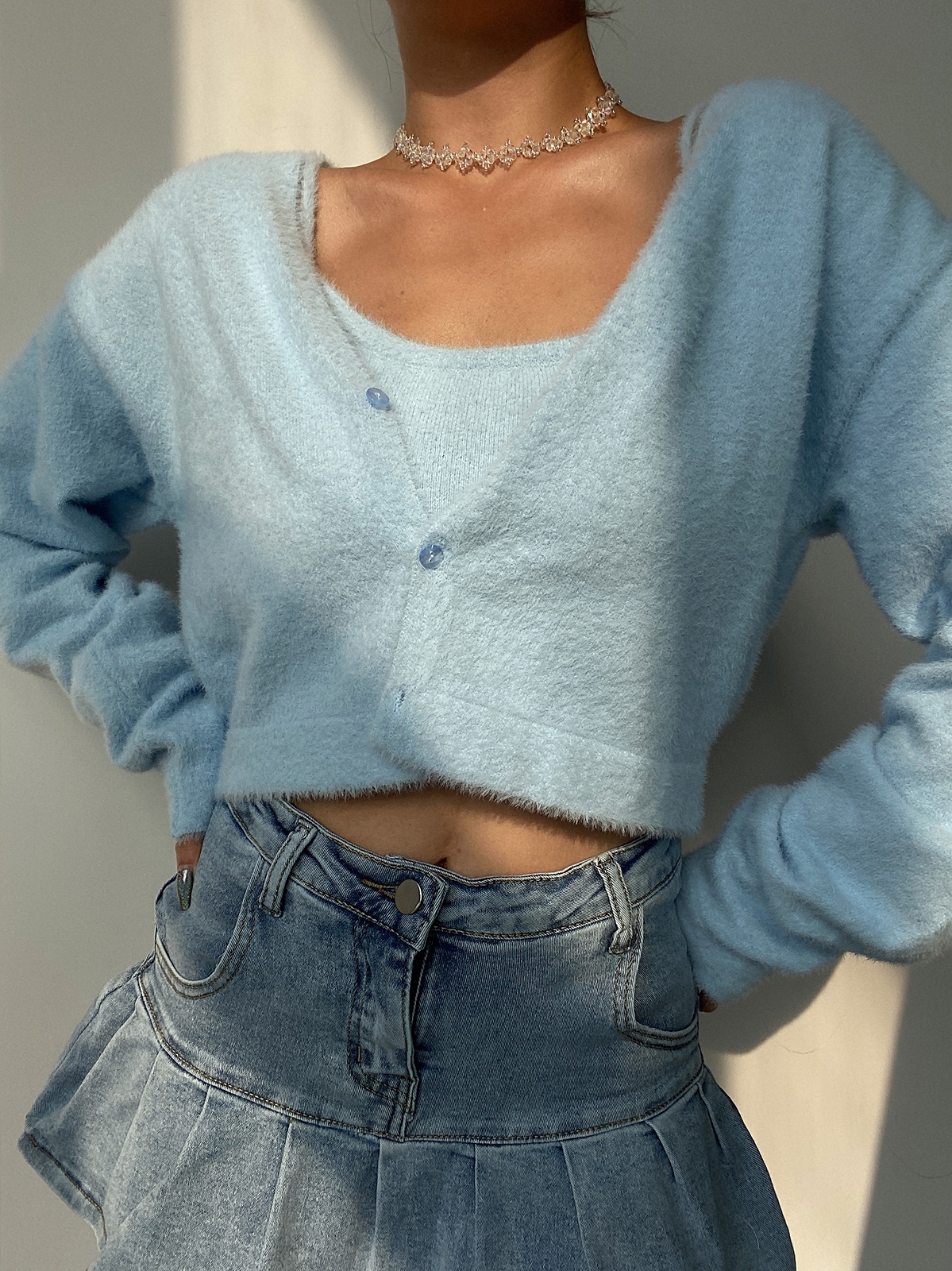 Soft Fluffy Mink Velvet High Waisted Short Knitted Camisole Cardigan Two Set Retro High-quality product featuring cute winter outfits, christmas outfit, holiday outfits and more. Modern design that fits the latest trends. Premium materials ensure durability and comfort. Order now for special offers! Product designed with attention to every detail. Suitable for all occasions and personal styles.