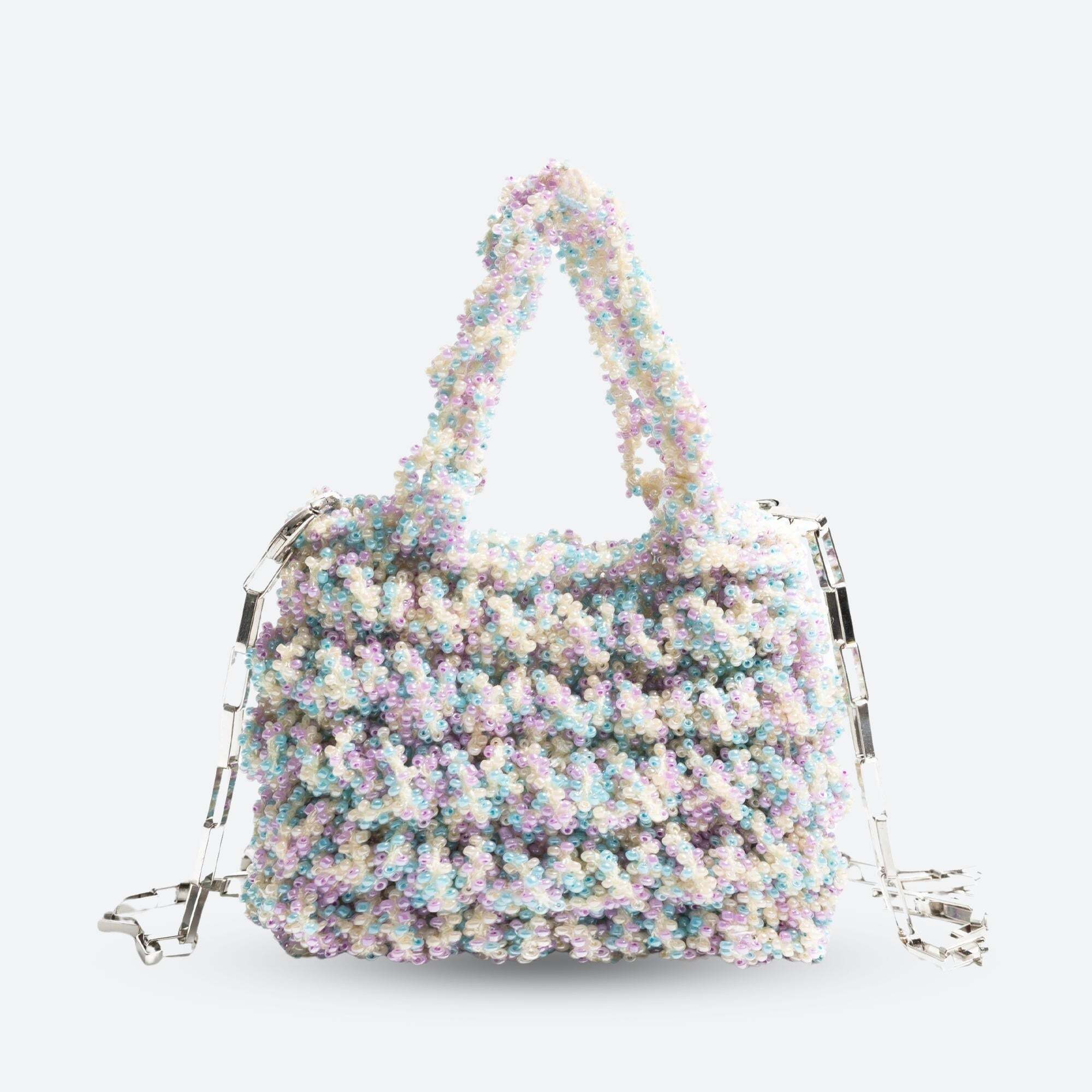 The beaded texture adds a cozy, playful touch to your ensemble, ideal for casual or semi-formal outings. Featuring a chunky chain strap and compact size, this handbag holds your essentials in style and comfort.