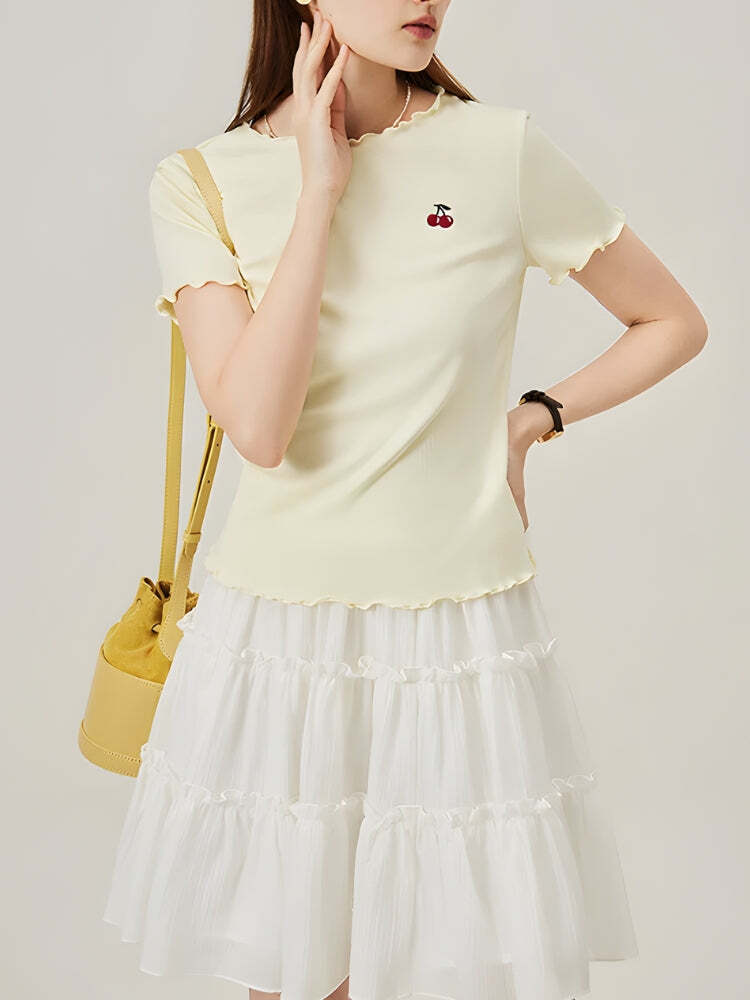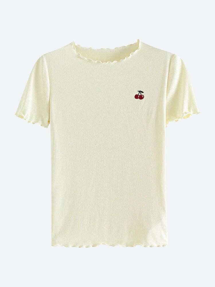 Soft Girl Cherry Lettuce Edge Tee High-quality product featuring dream clothes, spring outfit, date night outfit and more. Modern design that fits the latest trends. Premium materials ensure durability and comfort. Order now for special offers! Product designed with attention to every detail. Suitable for all occasions and personal styles.