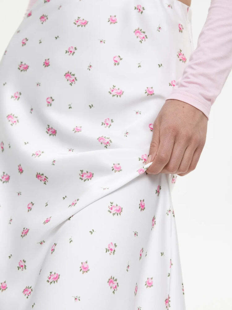 Soft Girl Floral Satin Midi Skirt High-quality product featuring spring outfit, pretty outfits, dream clothes and more. Modern design that fits the latest trends. Premium materials ensure durability and comfort. Order now for special offers! Product designed with attention to every detail. Suitable for all occasions and personal styles.