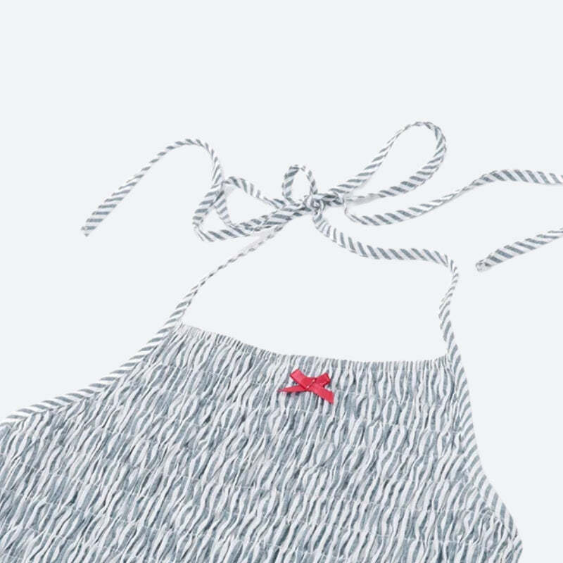 Own a youthful vibe in this Soft Girl Striped Ruched Mini Dress. The ruched bodice and playful halter neckline flatter your figure, while breezy stripes add a fresh look for weekend fun or quick getaways.