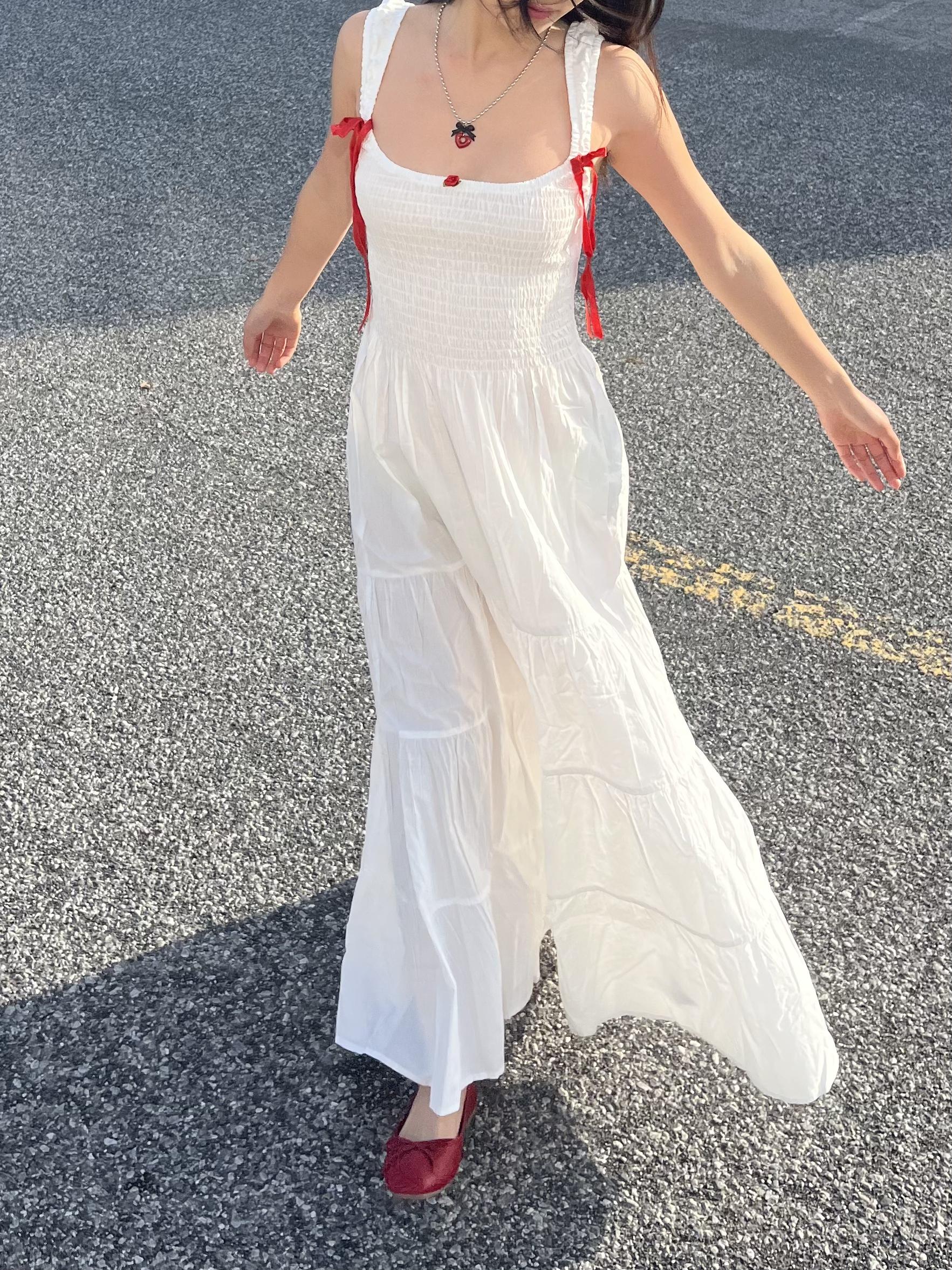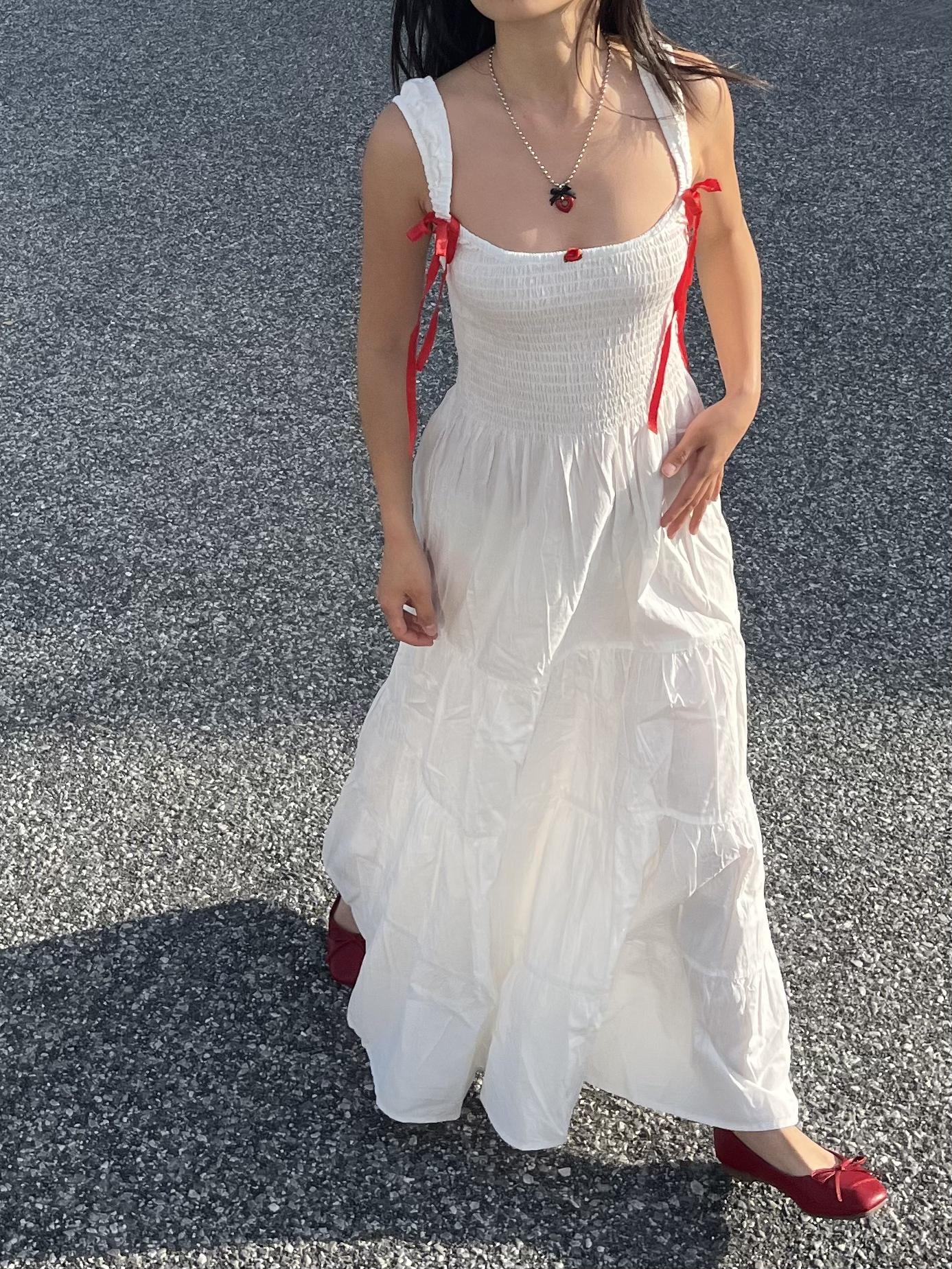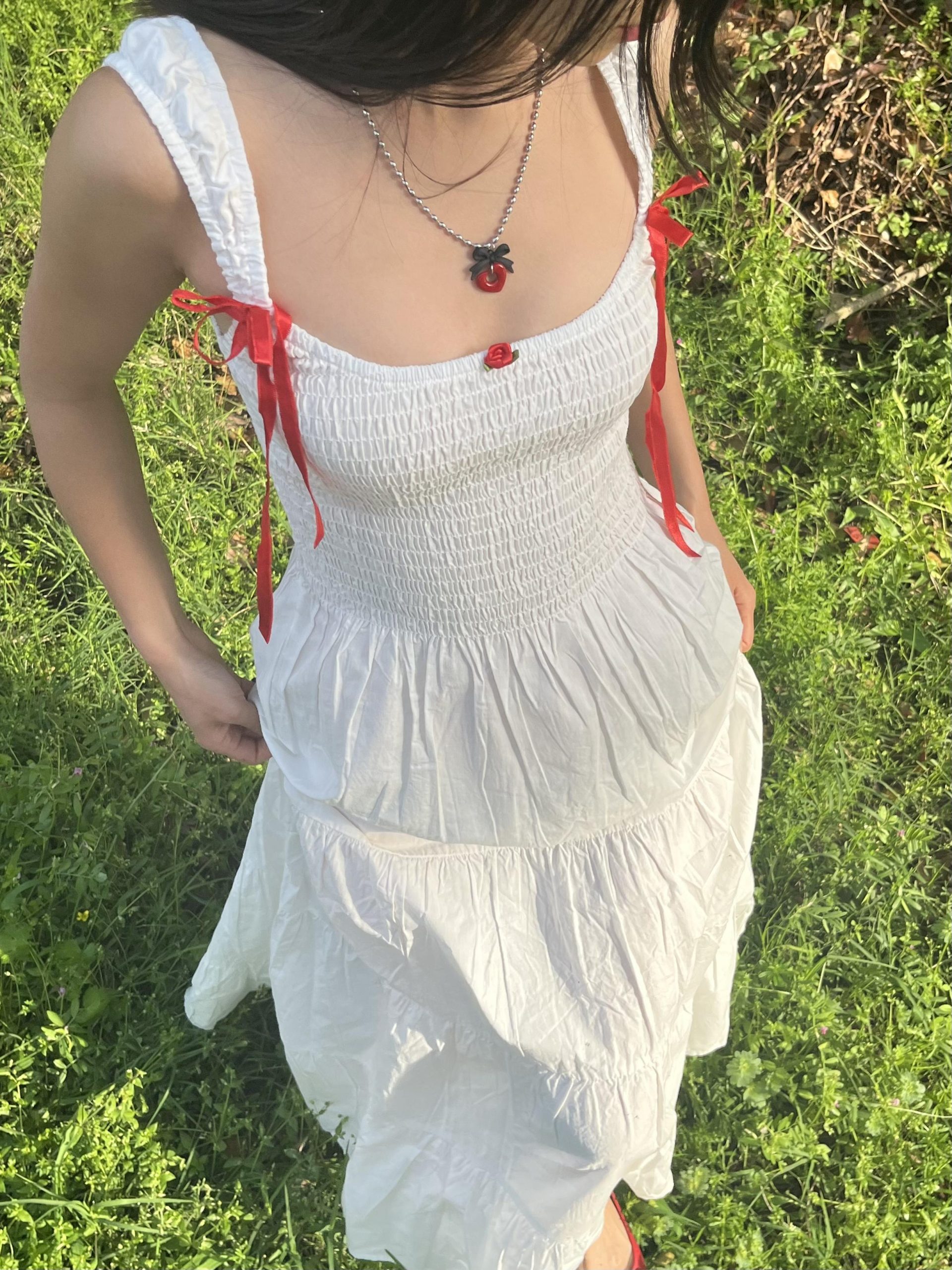 Solid Red Bow Tie Flowing Shoulder Exposing Dress Women Spring/Summer, Y2K High-quality product featuring hoco dresses, graduation dress, spring outfit and more. Modern design that fits the latest trends. Premium materials ensure durability and comfort. Order now for special offers! Product designed with attention to every detail. Suitable for all occasions and personal styles.