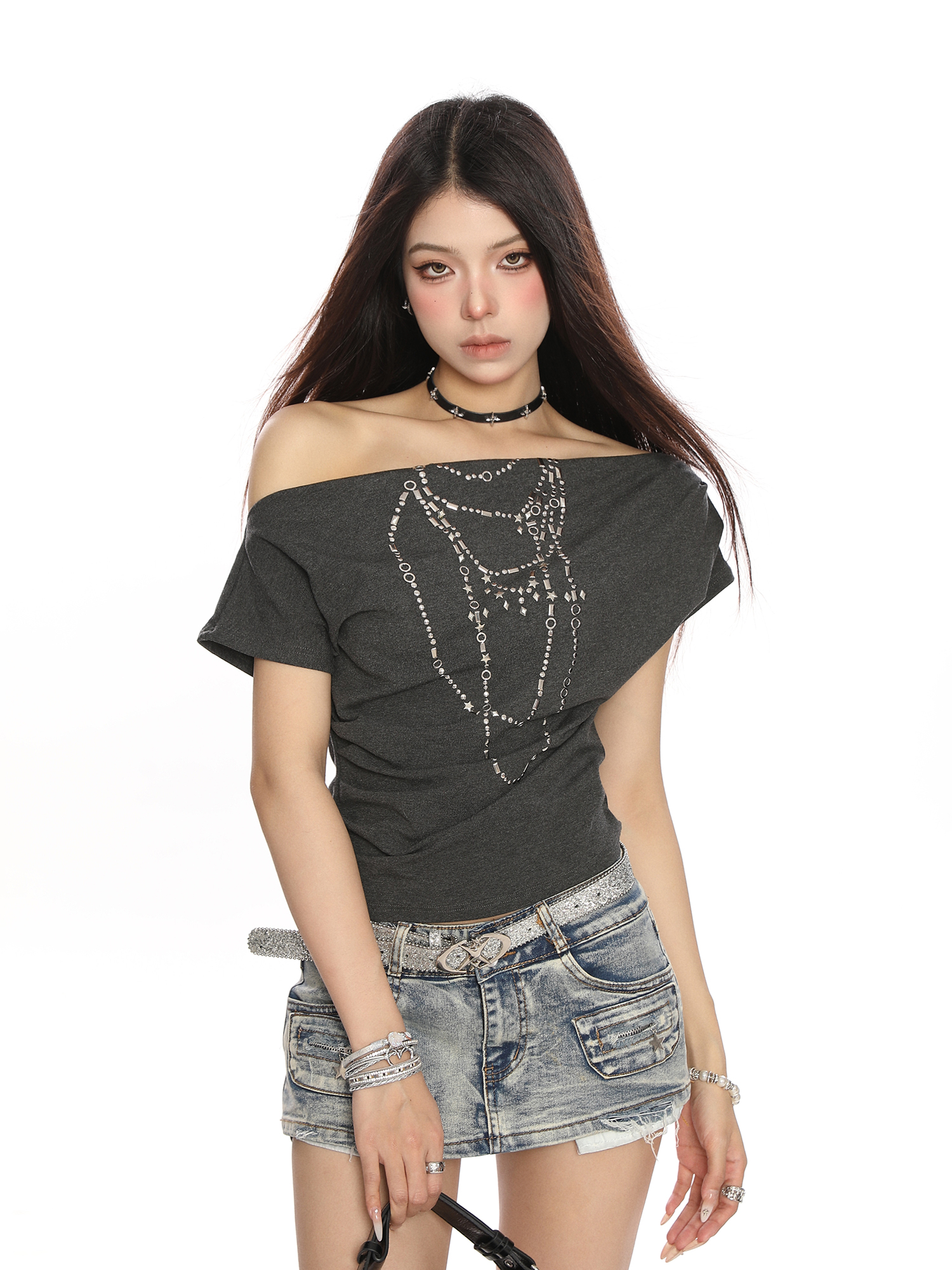 Studded Off Shoulder Short Sleeve Women Summer Slim Fit One Shoulder Top, Y2K High-quality product featuring y2k outfits, fall fits, fall outfits women and more. Modern design that fits the latest trends. Premium materials ensure durability and comfort. Order now for special offers! Product designed with attention to every detail. Suitable for all occasions and personal styles.