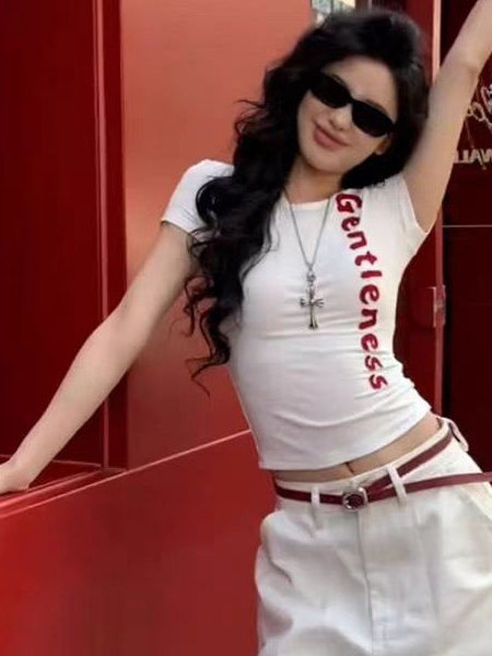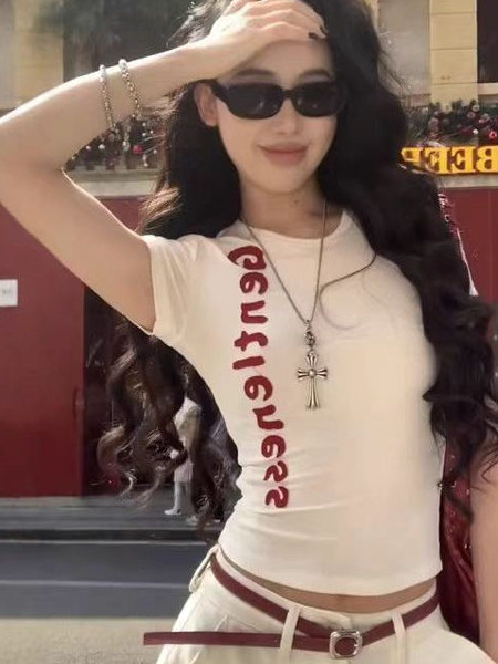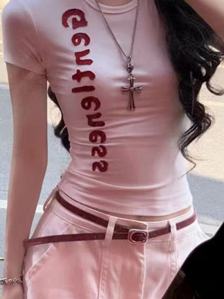White Letter Print Short Sleeve Women Slim Fit Summer Top High-quality product featuring casual summer outfits, easy costumes women, fall outfits women and more. Modern design that fits the latest trends. Premium materials ensure durability and comfort. Order now for special offers! Product designed with attention to every detail. Suitable for all occasions and personal styles.
