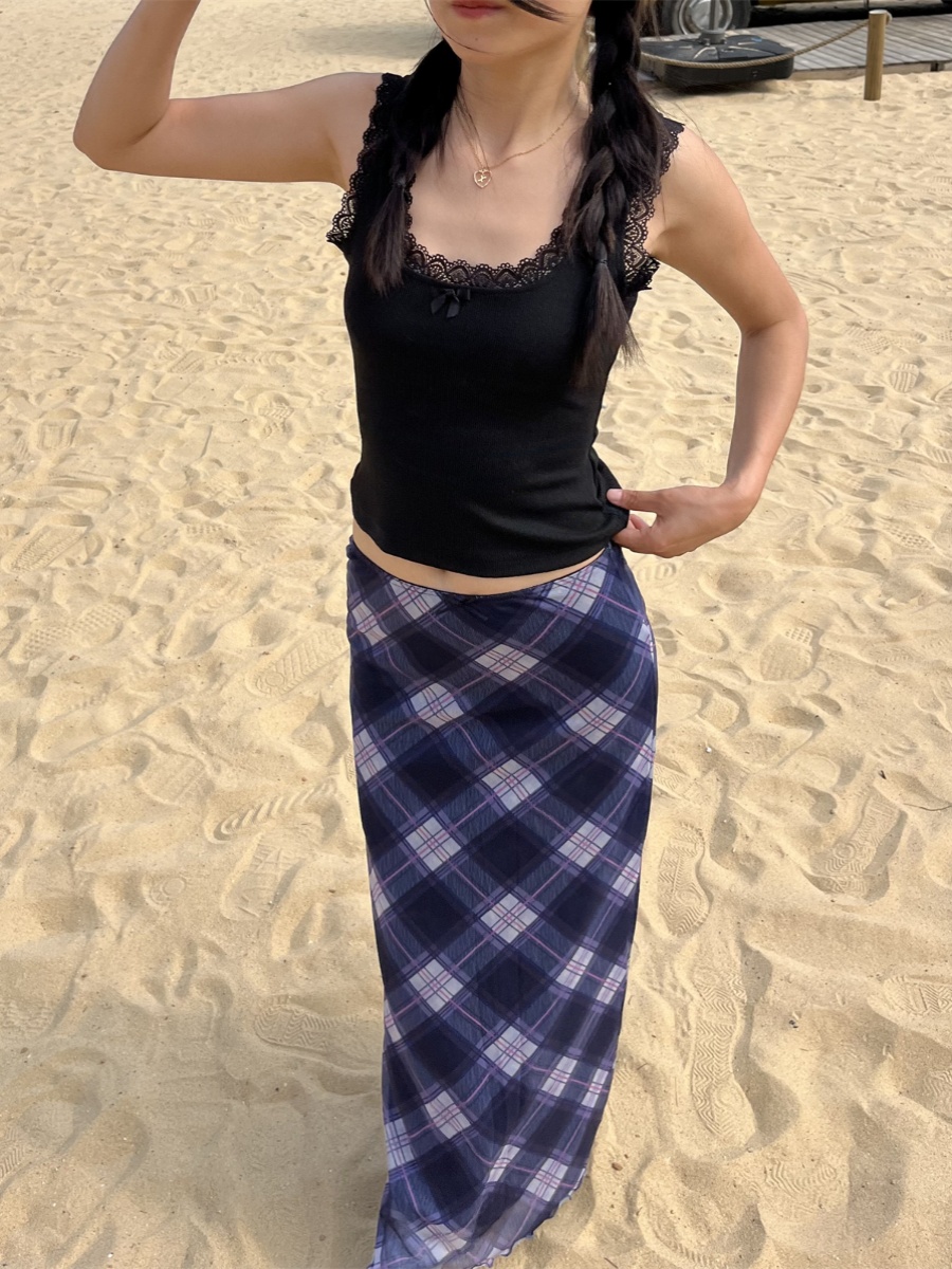 Spring Sheer Plaid Long Skirt Women Slim Fit, Elastic Waist, Sweet, Spicy, Y2K High-quality product featuring spring outfits, y2k outfits, skirt outfits and more. Modern design that fits the latest trends. Premium materials ensure durability and comfort. Order now for special offers! Product designed with attention to every detail. Suitable for all occasions and personal styles.