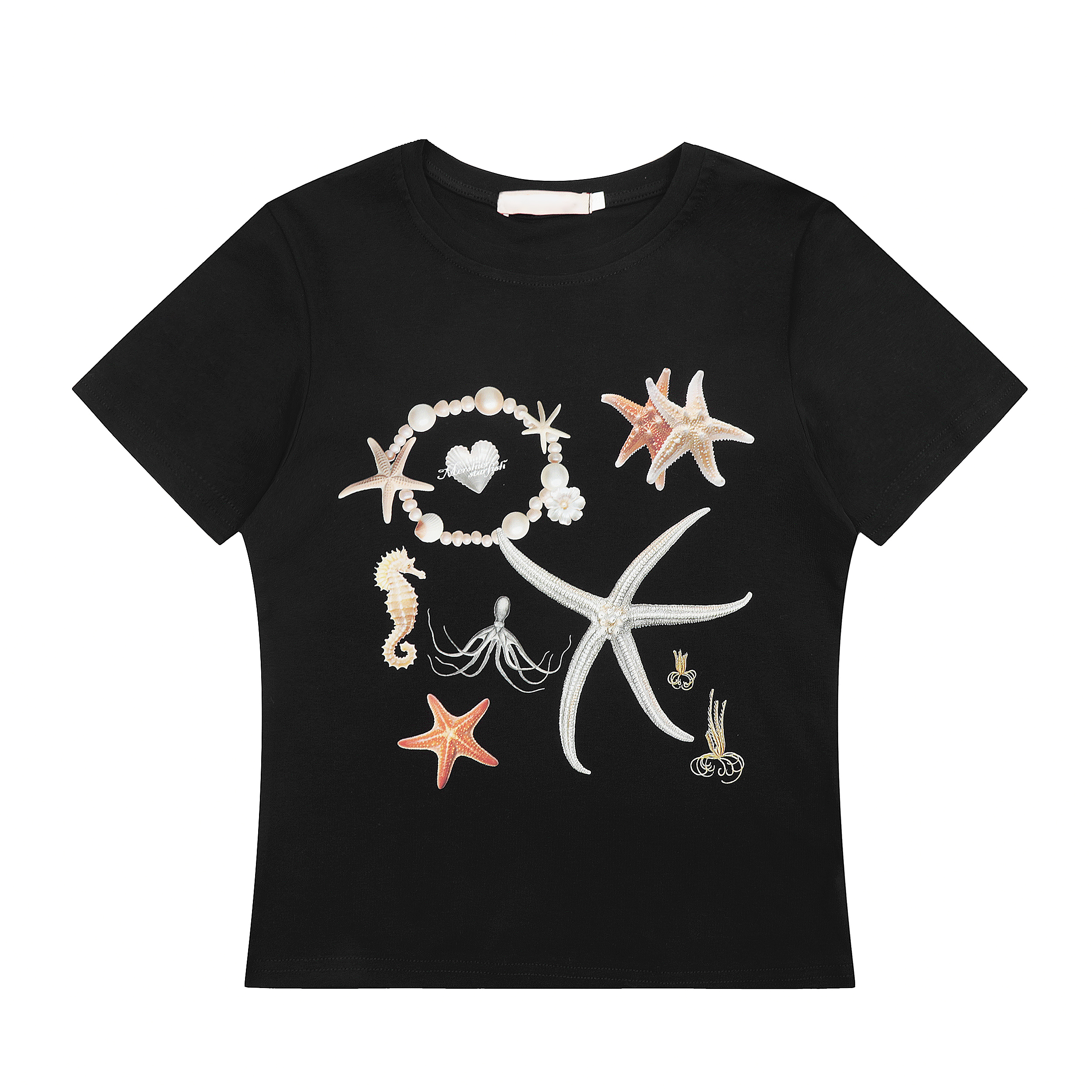 Starfish Print Cropped Short Sleeve Women Slim Fit Midriff Baring Top, Casual Wear High-quality product featuring casual outfits, simple halloween costume, outfit inspo and more. Modern design that fits the latest trends. Premium materials ensure durability and comfort. Order now for special offers! Product designed with attention to every detail. Suitable for all occasions and personal styles.