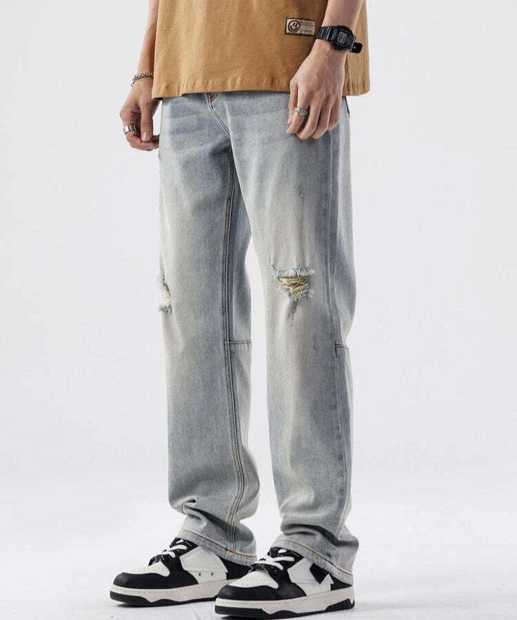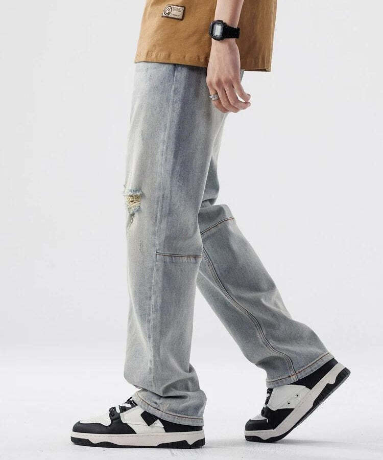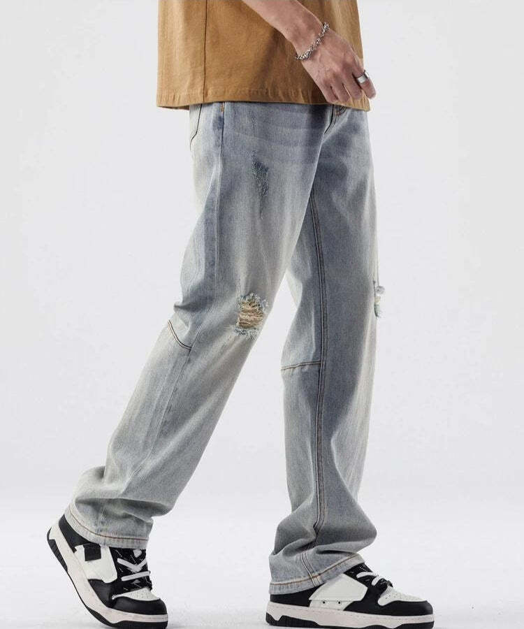 Effortless Outfit Inspo: Straight Leg Distressed Knee Jeans for Stylish Looks