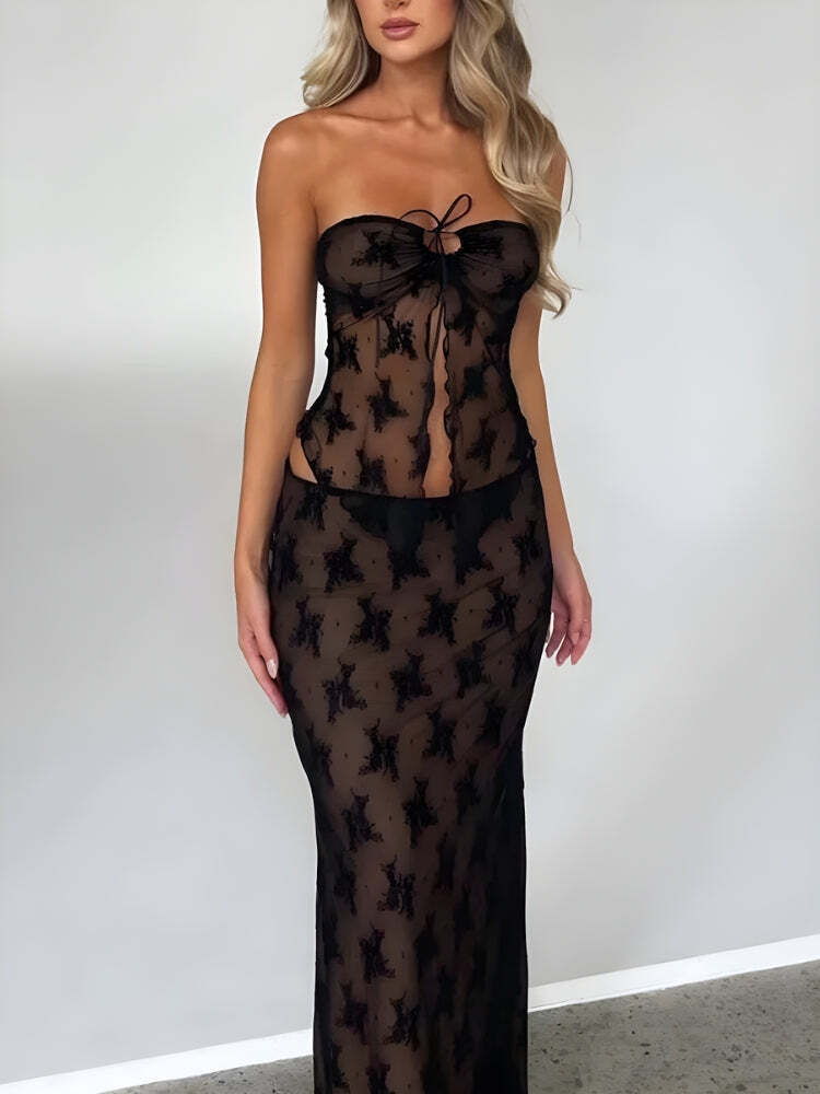 Strapless Sheer Top & Maxi Skirt Two Piece Set High-quality product featuring pretty outfits, fashion outfits, outfit ideas and more. Modern design that fits the latest trends. Premium materials ensure durability and comfort. Order now for special offers! Product designed with attention to every detail. Suitable for all occasions and personal styles.