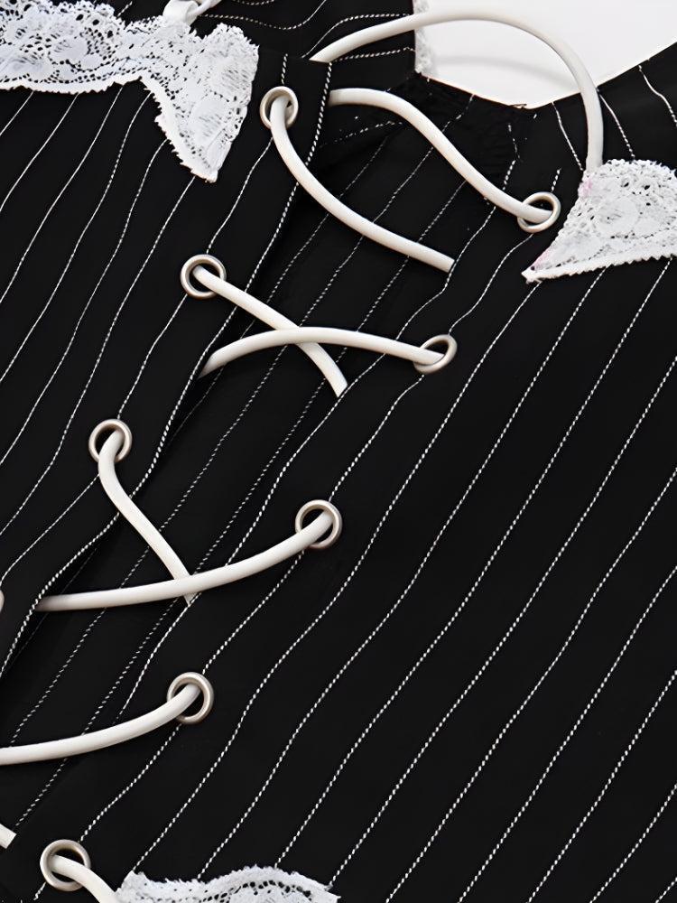 Striped Lace Trim Corset Top High-quality product featuring coquette outfit, black corset halloween costume, skirt outfits and more. Modern design that fits the latest trends. Premium materials ensure durability and comfort. Order now for special offers! Product designed with attention to every detail. Suitable for all occasions and personal styles.