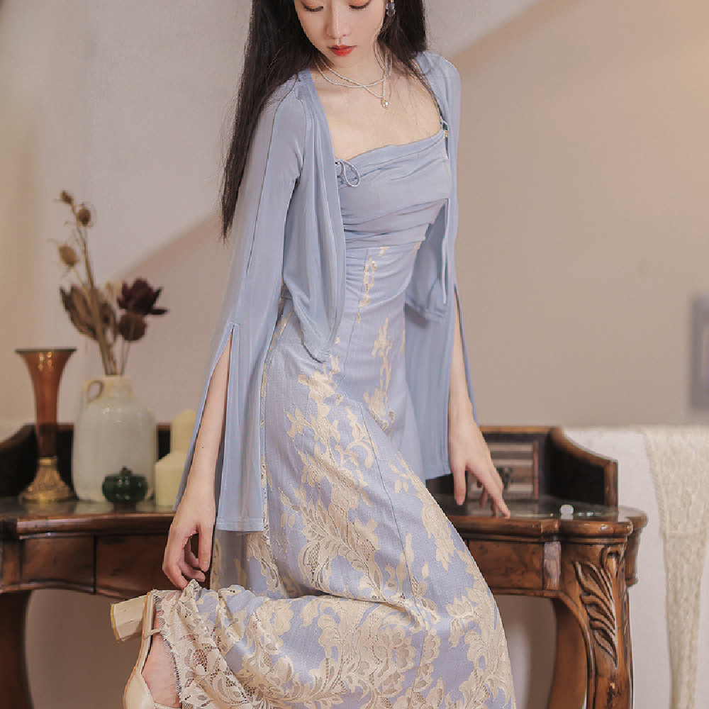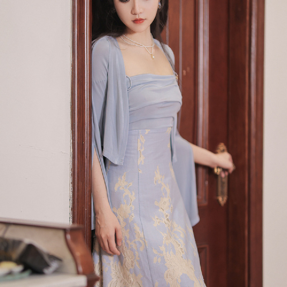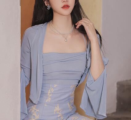Color: Sky blue topper, topper and slip dress