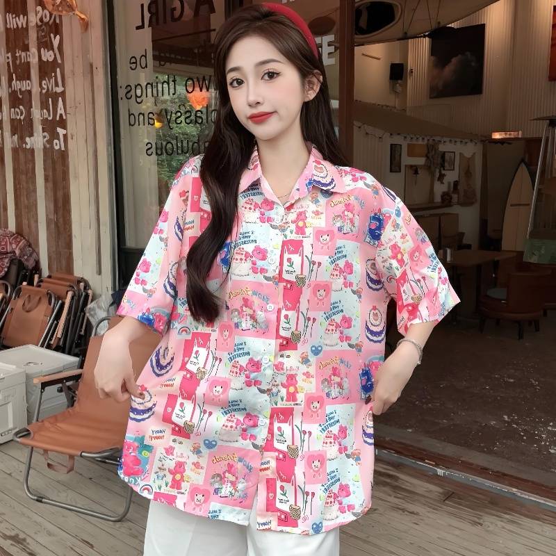 Summer Casual Loose Cartoon Print Short Sleeve Shirt Women Beach Top Students High-quality product featuring summer fits, vacation outfits, casual outfits and more. Modern design that fits the latest trends. Premium materials ensure durability and comfort. Order now for special offers! Product designed with attention to every detail. Suitable for all occasions and personal styles.
