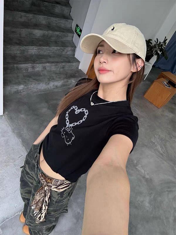 Summer Cool Girl Hello Kitty Shoulder Slim Fit Short Sleeve Y2K High-quality product featuring summer fits, easy halloween costume, casual summer outfits and more. Modern design that fits the latest trends. Premium materials ensure durability and comfort. Order now for special offers! Product designed with attention to every detail. Suitable for all occasions and personal styles.