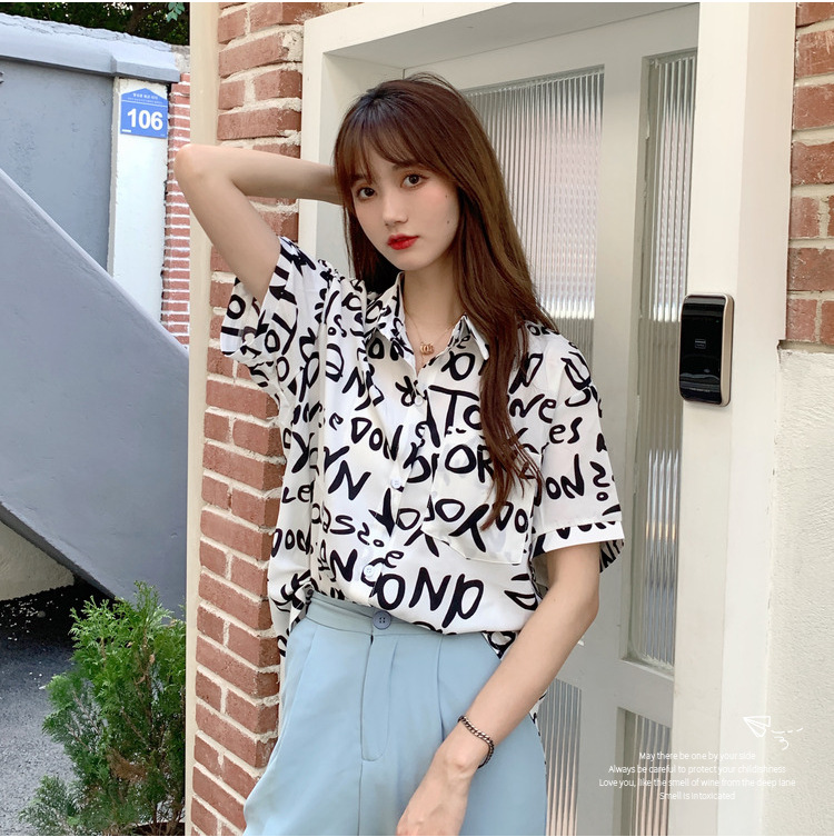 Elevate your summer wardrobe with our trendy Summer Short Sleeve Shirt for Women. This casual letter print beach top features a relaxed fit, perfect for those sunny days out or laid-back weekends. With its chic Hong Kong style INS design, you’ll stay stylish and comfortable while making a statement. Don’t miss out on this essential piece of summer fashion add it to your cart today!