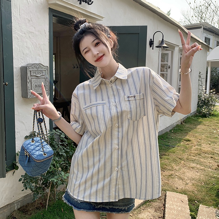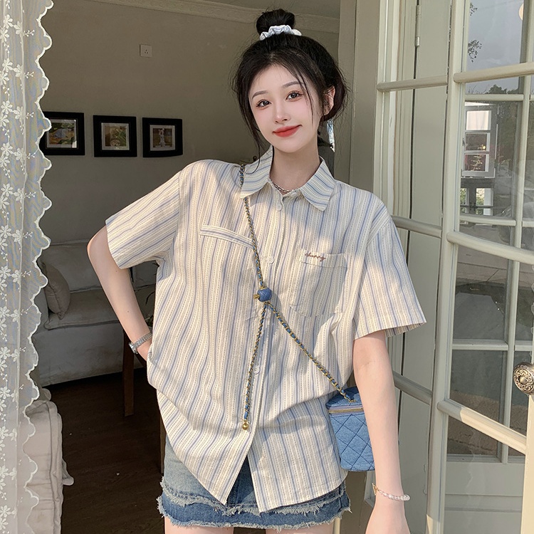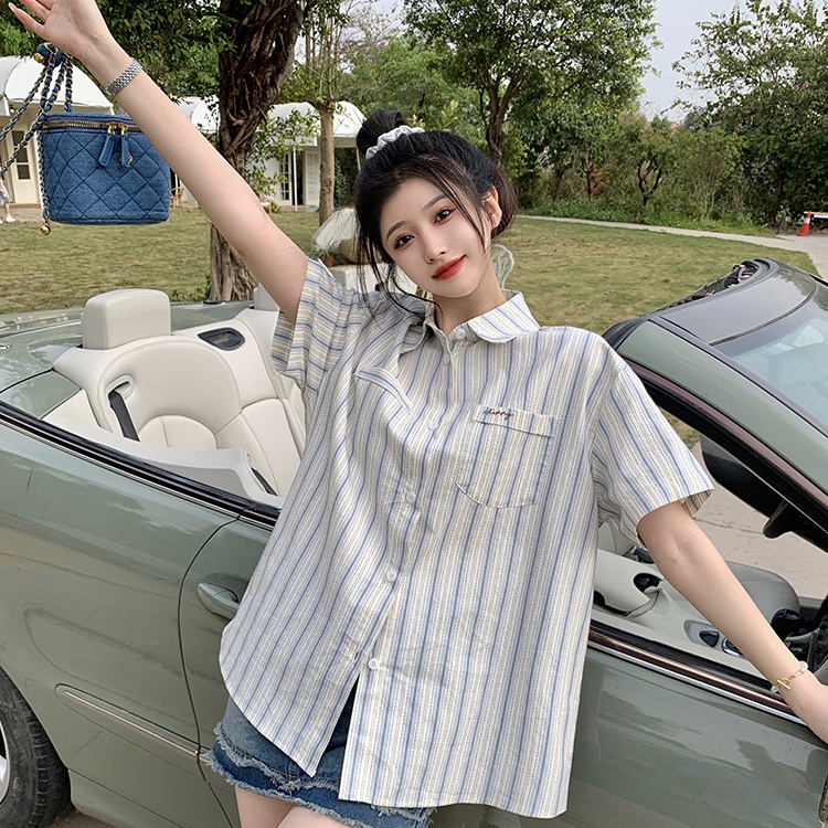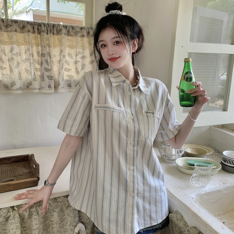 Summer Striped Short Sleeve Shirt Women, Casual Loose Blo, Top, Students High-quality product featuring summer fits, casual outfits, outfit ideas for school and more. Modern design that fits the latest trends. Premium materials ensure durability and comfort. Order now for special offers! Product designed with attention to every detail. Suitable for all occasions and personal styles.