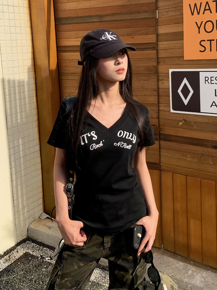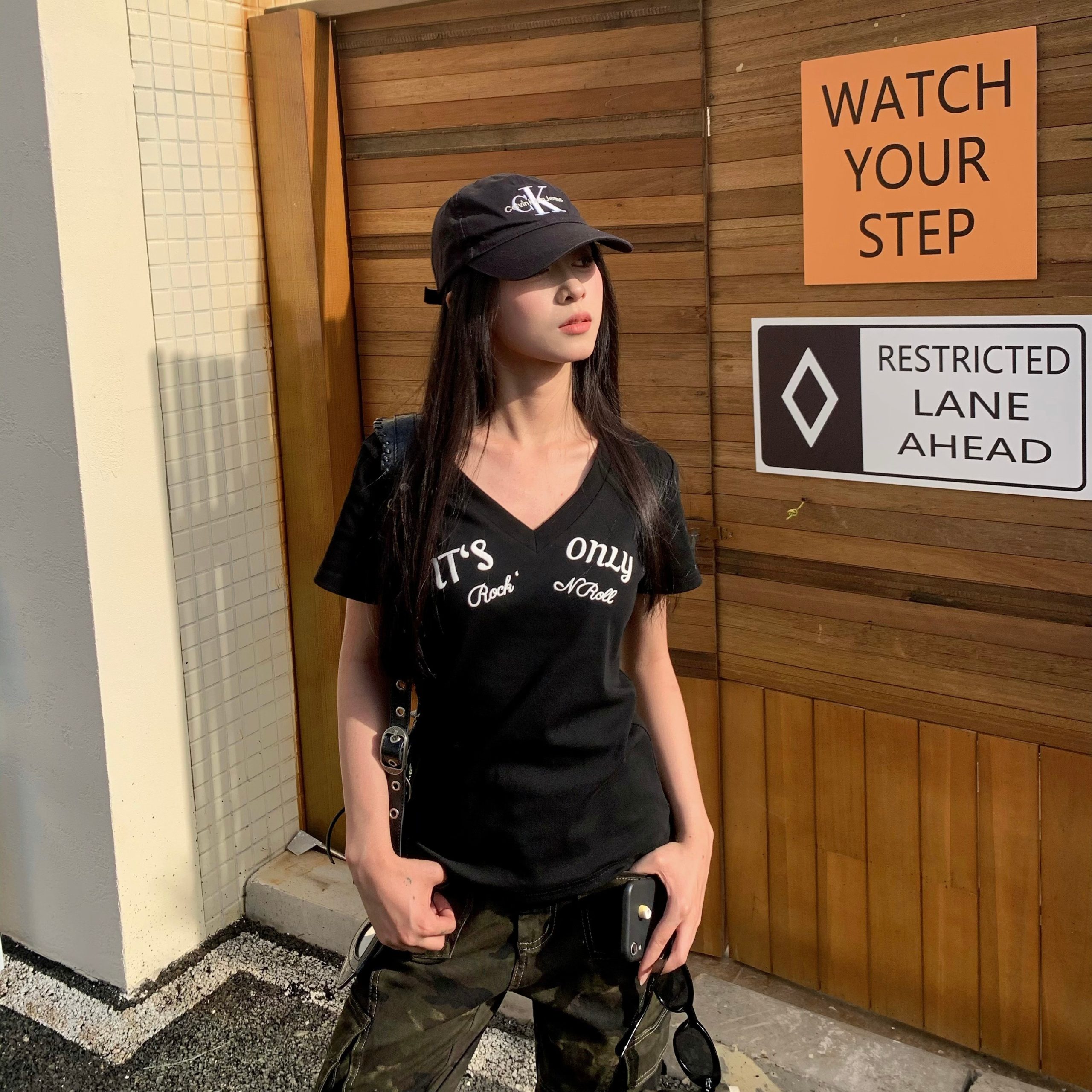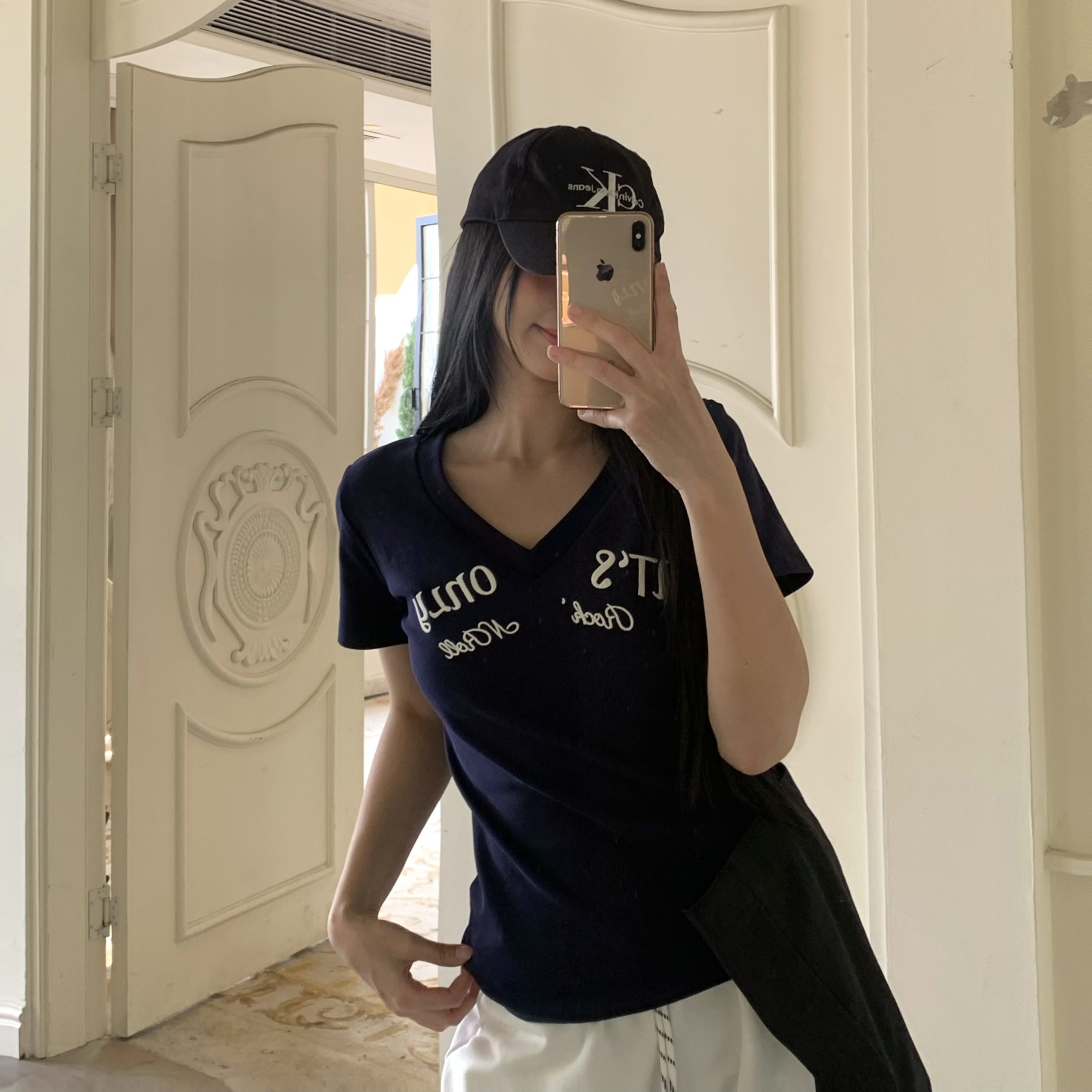 Summer V- Neck Embroidered Short Sleeve Women Cool Girl Slim Fit Top High-quality product featuring casual summer outfits, vacation outfits, outfit inspo and more. Modern design that fits the latest trends. Premium materials ensure durability and comfort. Order now for special offers! Product designed with attention to every detail. Suitable for all occasions and personal styles.