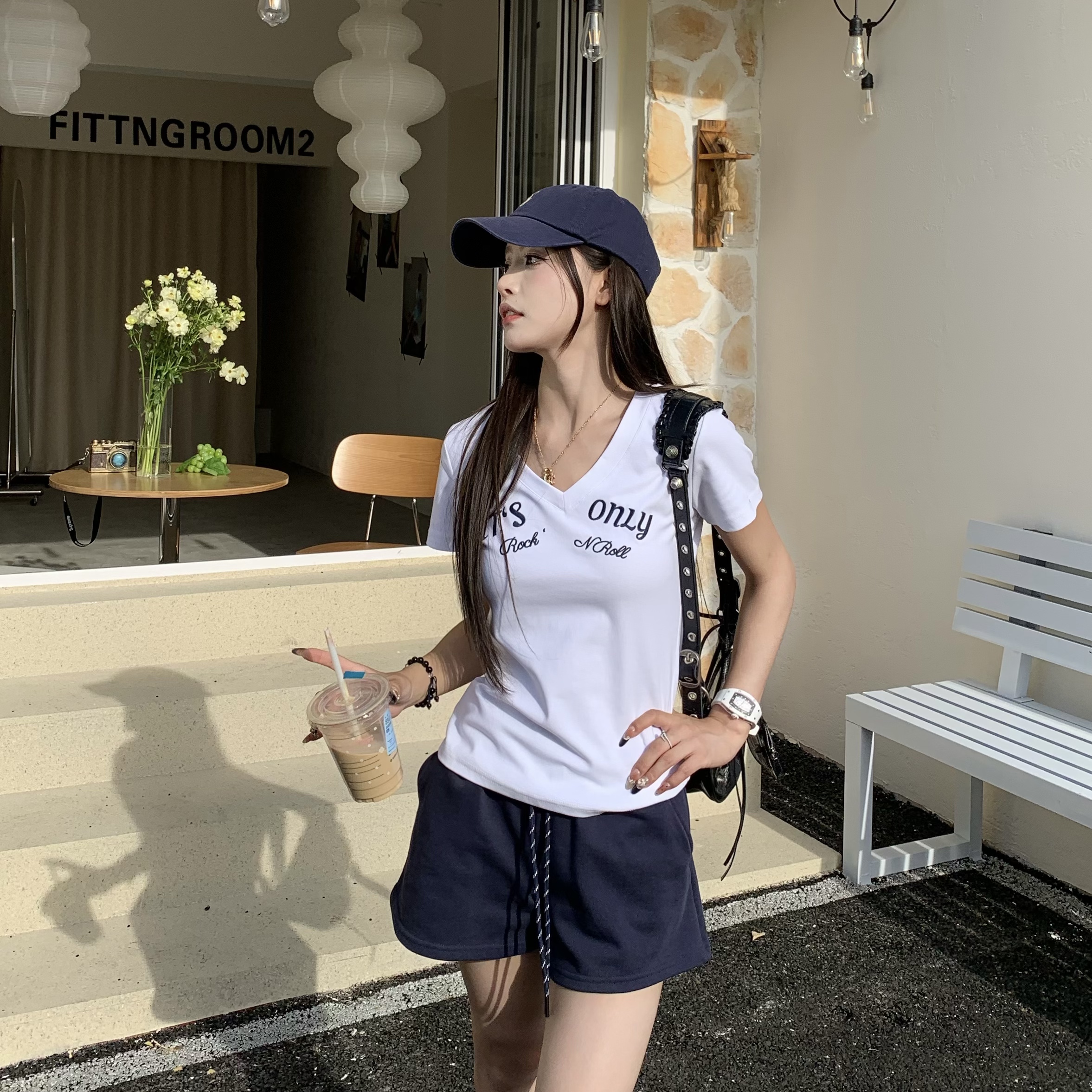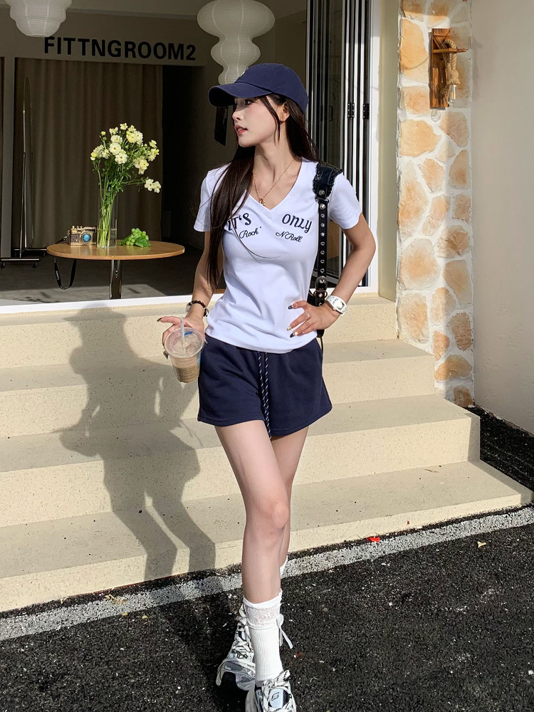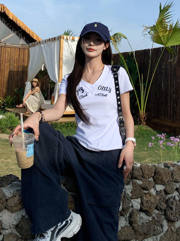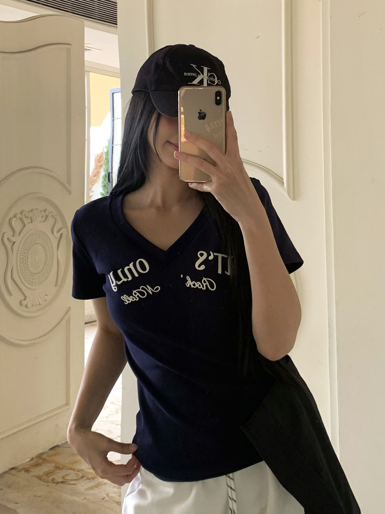 Summer V- Neck Embroidered Short Sleeve Women Cool Girl Slim Fit Top High-quality product featuring casual summer outfits, vacation outfits, outfit inspo and more. Modern design that fits the latest trends. Premium materials ensure durability and comfort. Order now for special offers! Product designed with attention to every detail. Suitable for all occasions and personal styles.