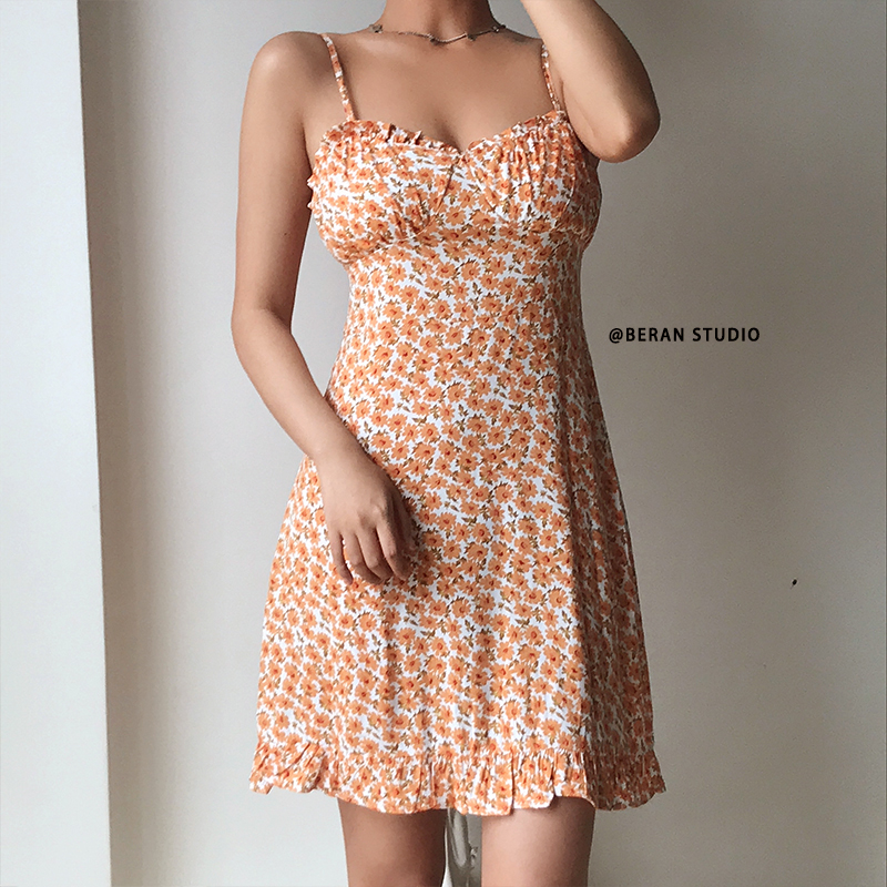 Summer Vintage Floral Spaghetti Strap Dress Ruffled Hem Y2K High-quality product featuring summer fits, spring outfit, coquette outfit and more. Modern design that fits the latest trends. Premium materials ensure durability and comfort. Order now for special offers! Product designed with attention to every detail. Suitable for all occasions and personal styles.