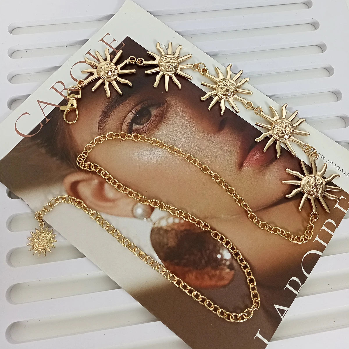 Bold and celestial, this waist chain showcases radiant sun charms linked together with a delicate chain, creating a striking Y2K-inspired statement. Adjustable for the perfect fit, it pairs effortlessly with low-rise jeans, skirts, or layered over dresses for a standout festival or streetwear vibe. A versatile accessory that adds cosmic energy to any outfit.