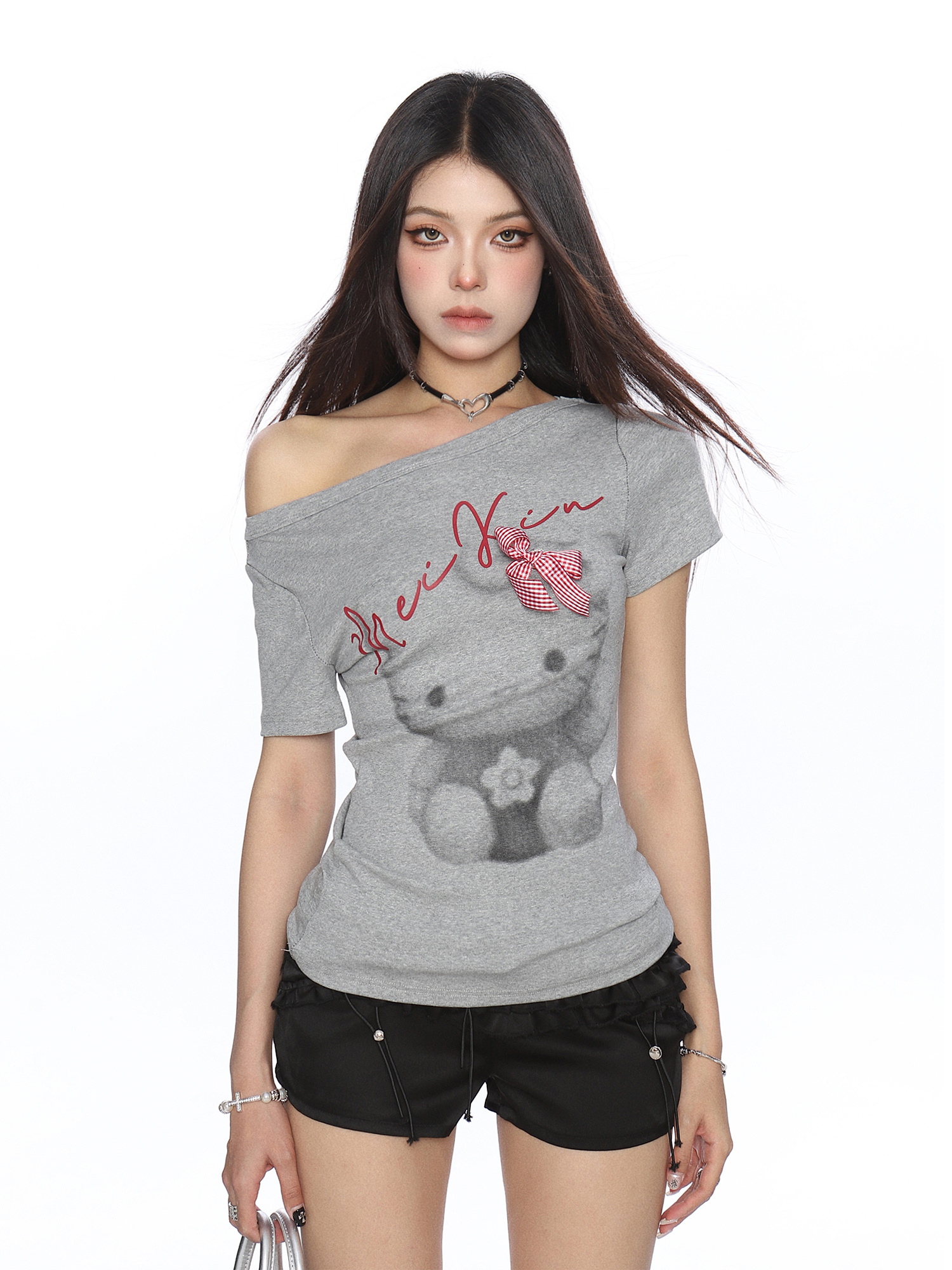 Sweet Cool Cartoon Hello Kitty Off Shoulder Short Sleeve Women Summer T – Y2k Outfits