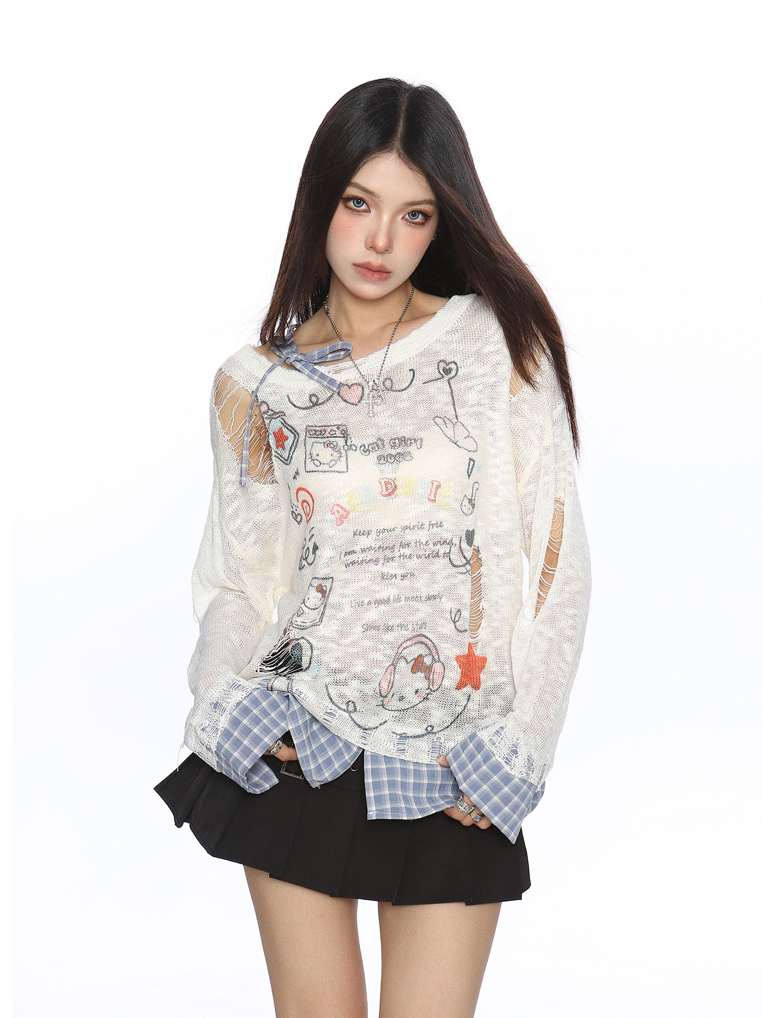 Elevate your summer wardrobe with our Sweet Dopamine Ripped Thin Long Sleeve T-Shirt for Women, designed for both comfort and style. This breathable top features a trendy tie two-piece design that adds a playful twist to your casual Y2K look. With its relaxed fit and stylish ripped details, it’s perfect for layering or wearing solo. Don’t miss out on this must-have piece add it to your cart today and step out in style!