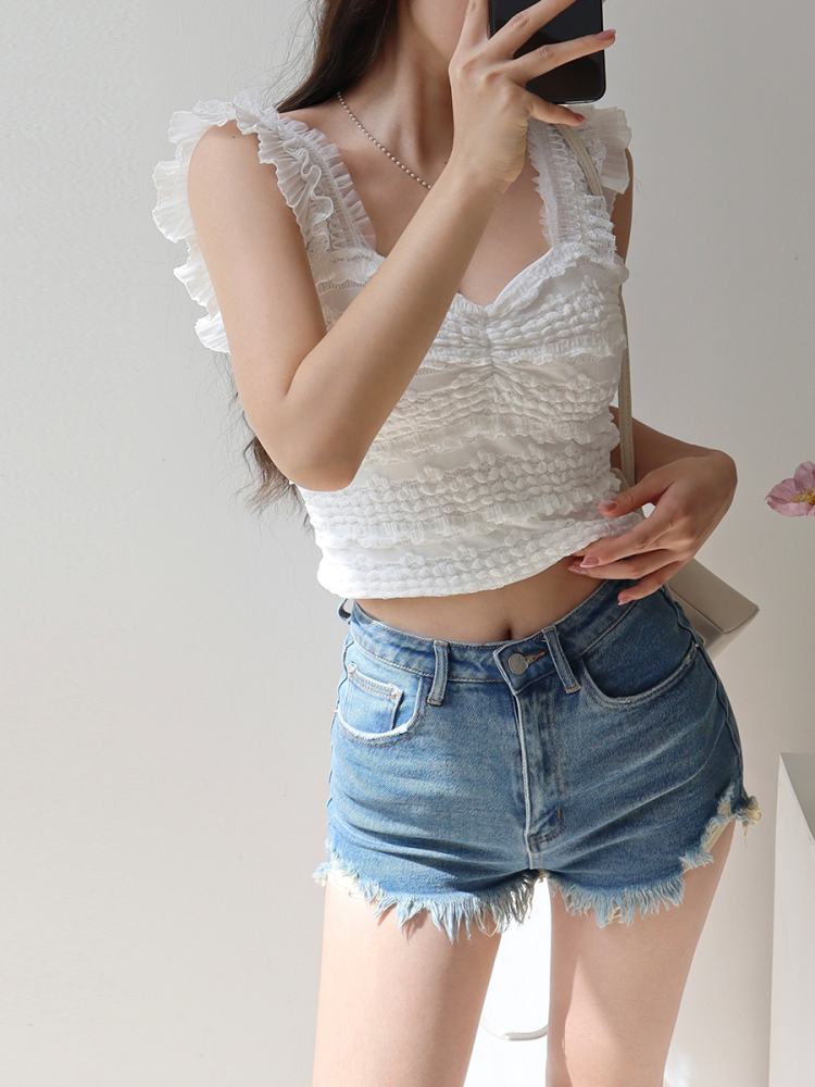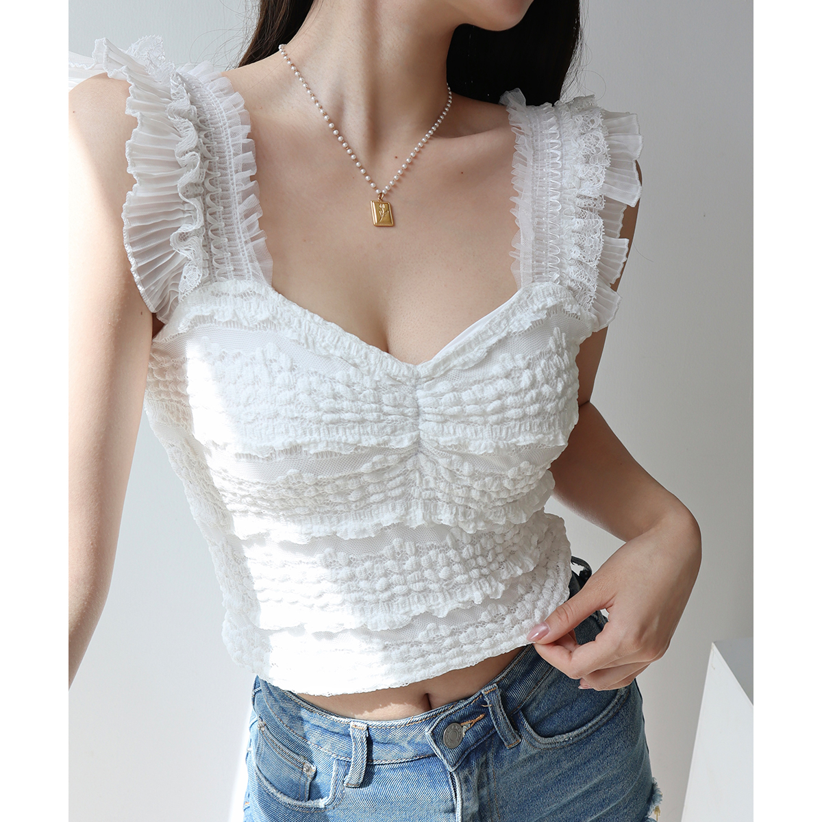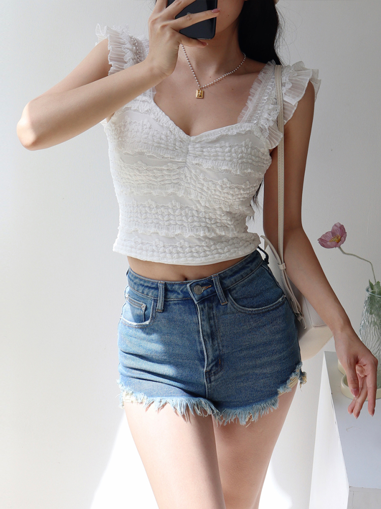 Elevate your wardrobe with our Sweet Lace Waist-Defining Flutter Sleeve Camisole Top, designed for both comfort and style. This enchanting piece features delicate lace accents and charming flutter sleeves that create a flattering silhouette, perfect for 90s and Y2K fashion lovers. Its slimming design hugs your curves in all the right places, making it an ideal choice for both casual outings and special occasions. Add this versatile top to your collection and effortlessly pair it with your favorite jeans or skirts. Shop now!
