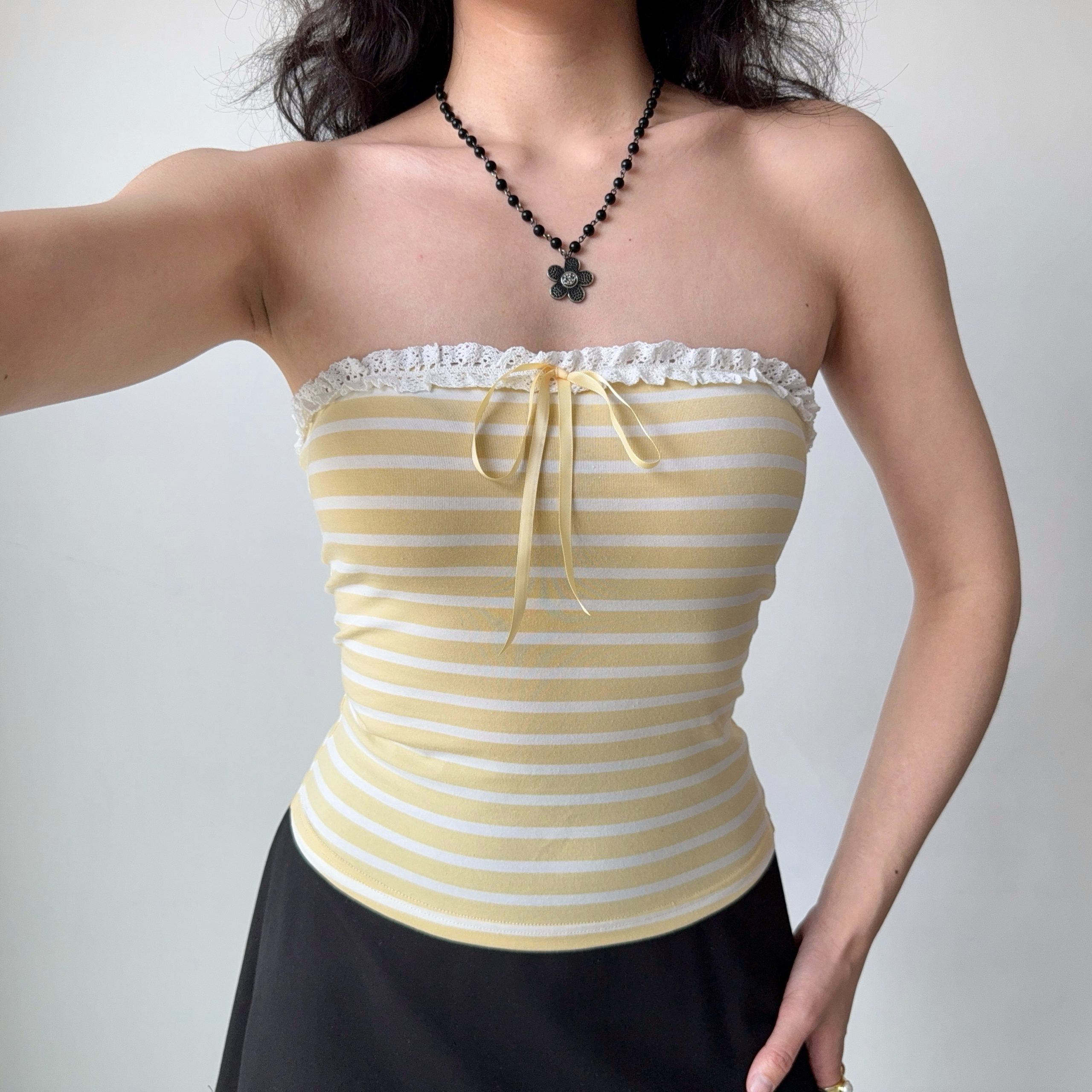 Sweet Spicy Hollow Lace Bow Strapless Slim Top Striped Women High-quality product featuring deer costume women, fall outfits women, iconic halloween costumes women and more. Modern design that fits the latest trends. Premium materials ensure durability and comfort. Order now for special offers! Product designed with attention to every detail. Suitable for all occasions and personal styles.