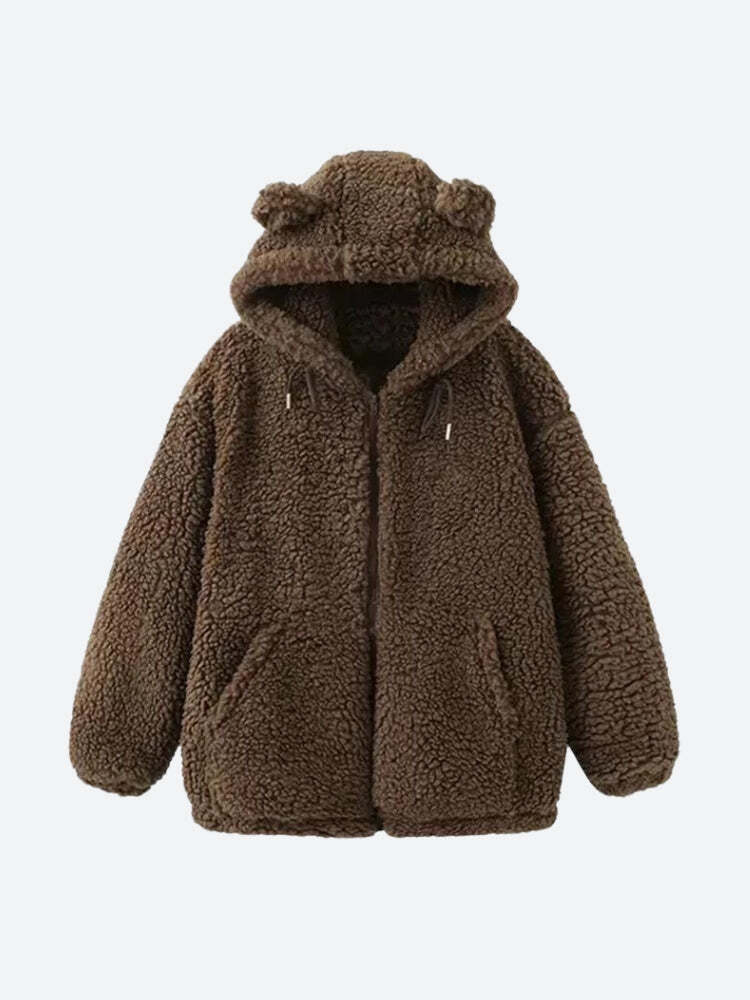 The Teddy Bear Jacket combines cozy comfort with playful style, crafted from plush fleece for warmth. Perfect for layering over casual outfits, it pairs easily with jeans or skirts for a laid-back, trendy look.