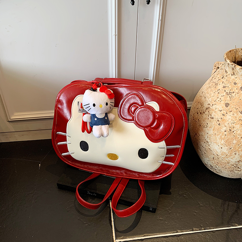 Textured Oil Wax Leather Cartoon Backpack Women Cute Summer Large Capac – Summer Fits