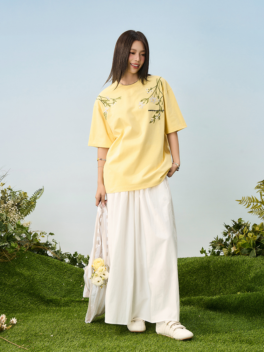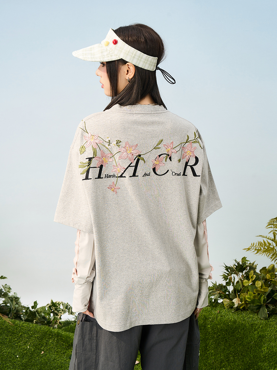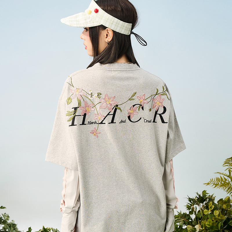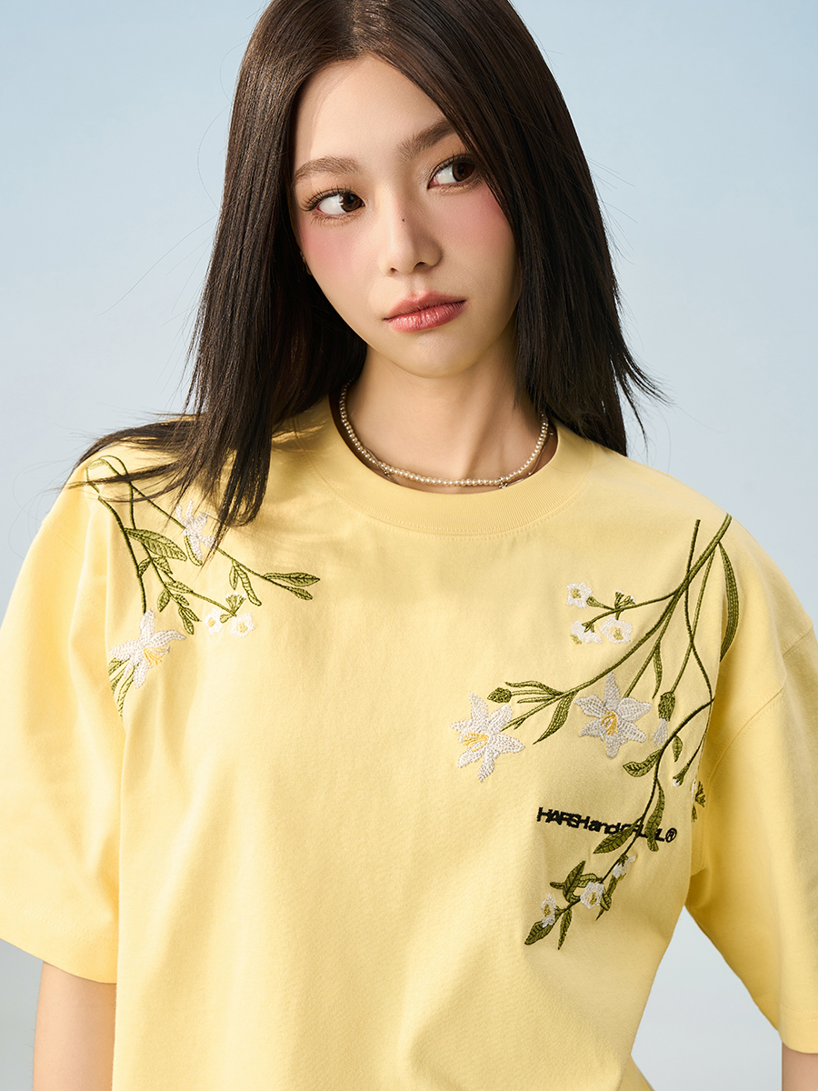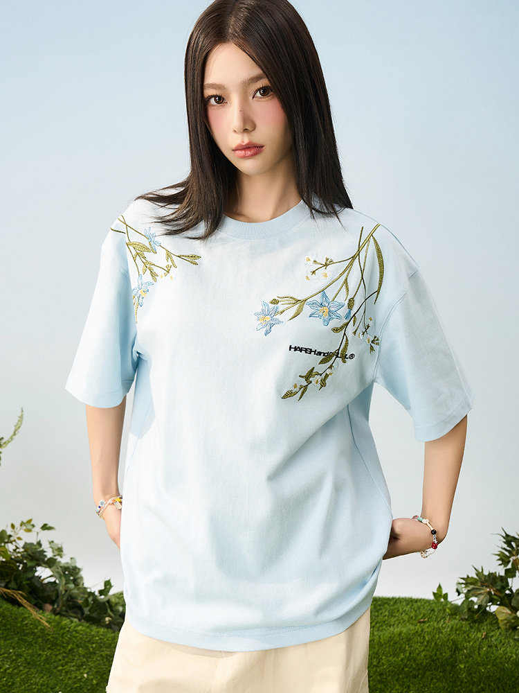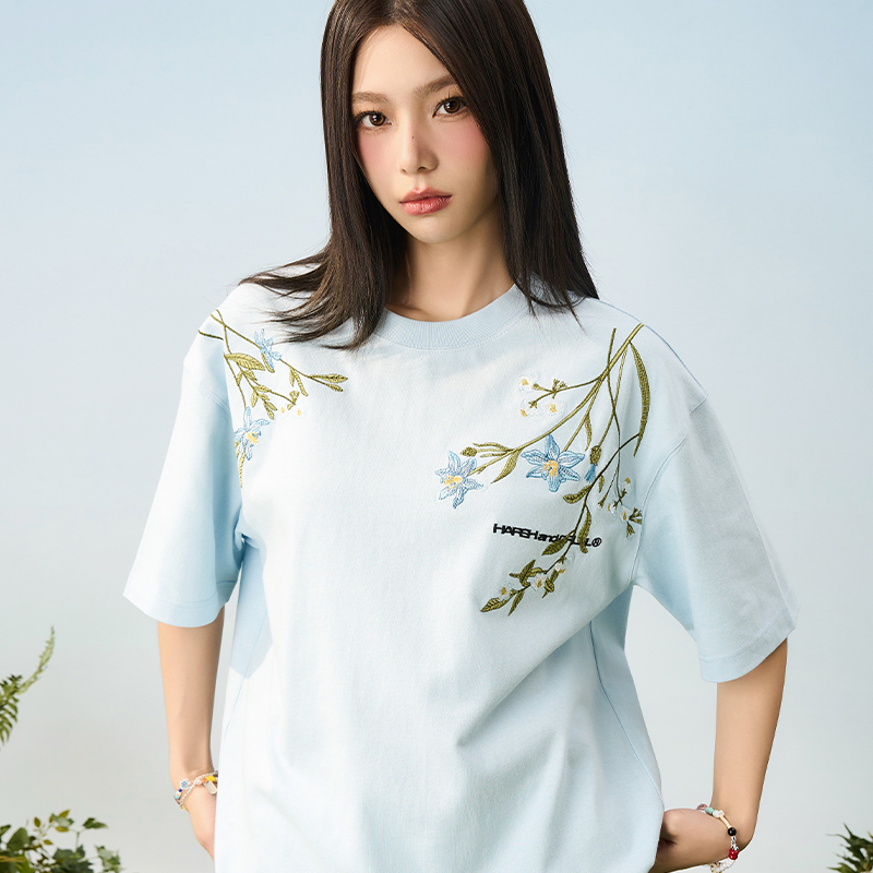 Thous Needle Embroidery Monet Garden Series Loose Short Sleeve Floral P – Y2k Outfits
