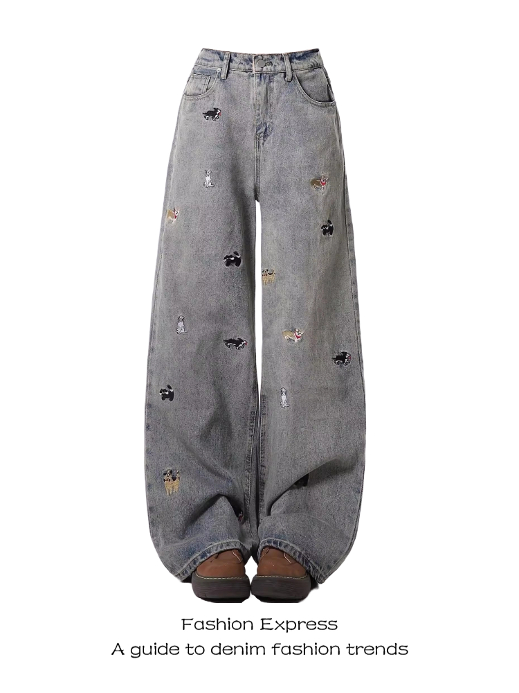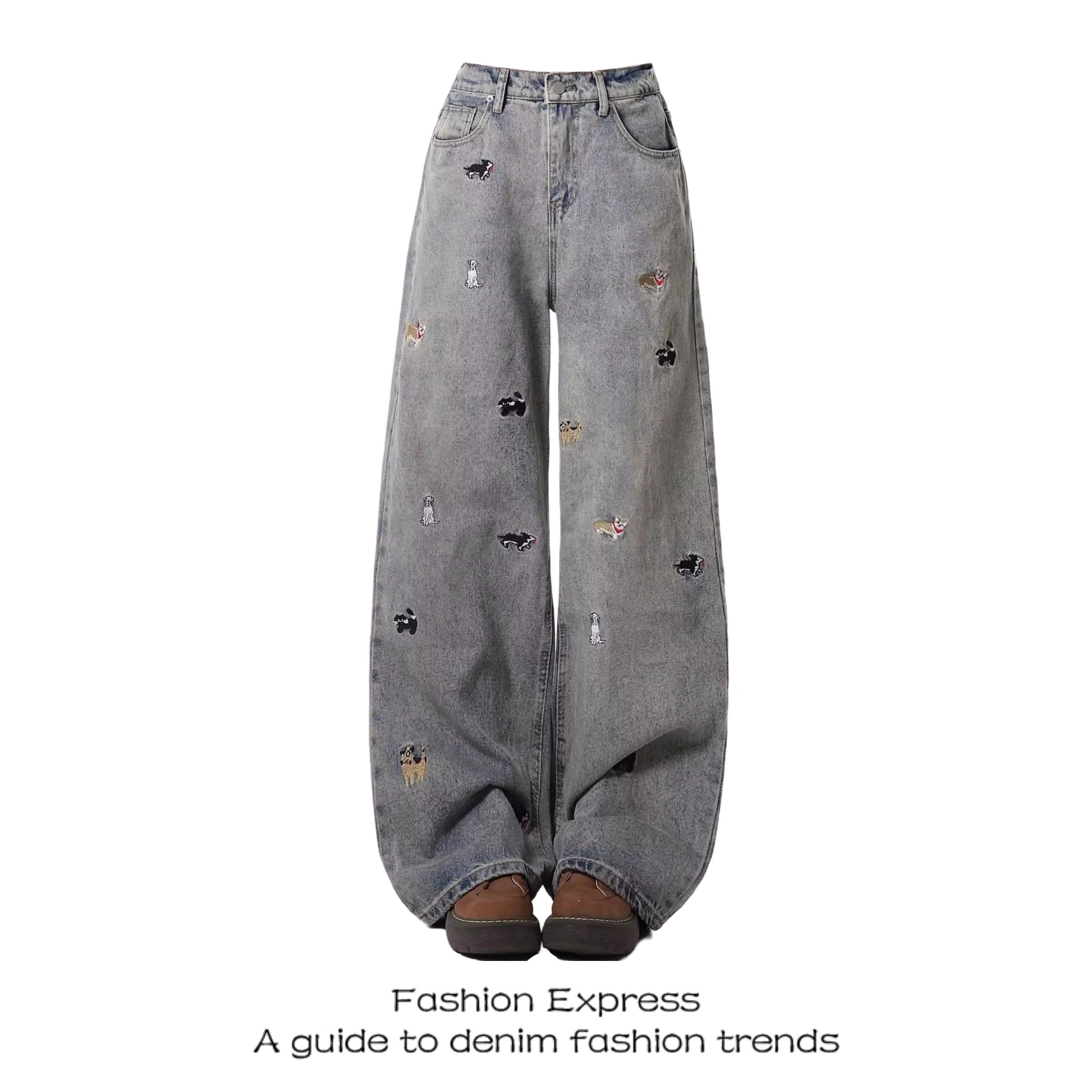 Retro High Waisted Denim Pants Women Fun Dog Embroidery, Straight Leg High-quality product featuring fashion outfits, outfit inspo, spring outfit and more. Modern design that fits the latest trends. Premium materials ensure durability and comfort. Order now for special offers! Product designed with attention to every detail. Suitable for all occasions and personal styles.