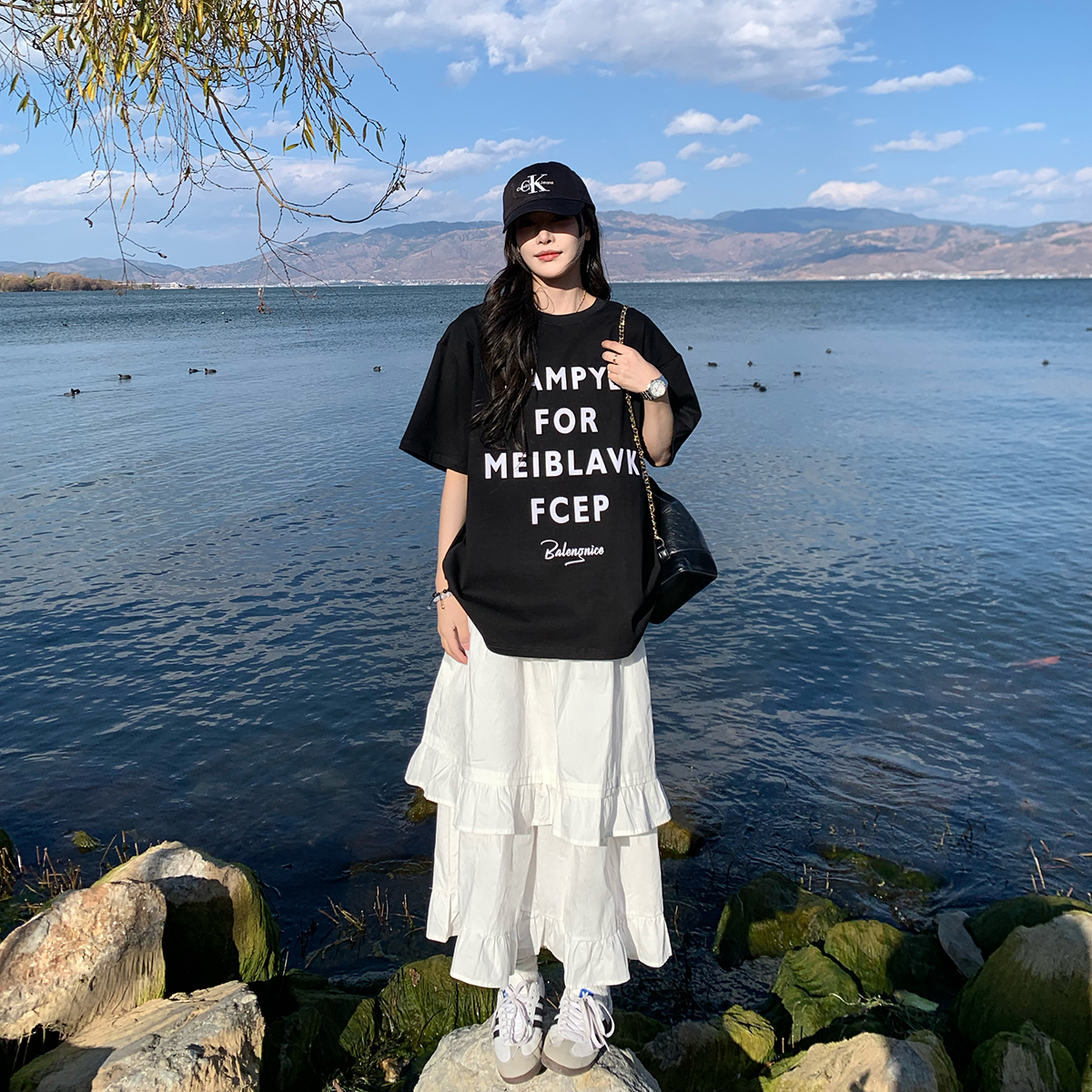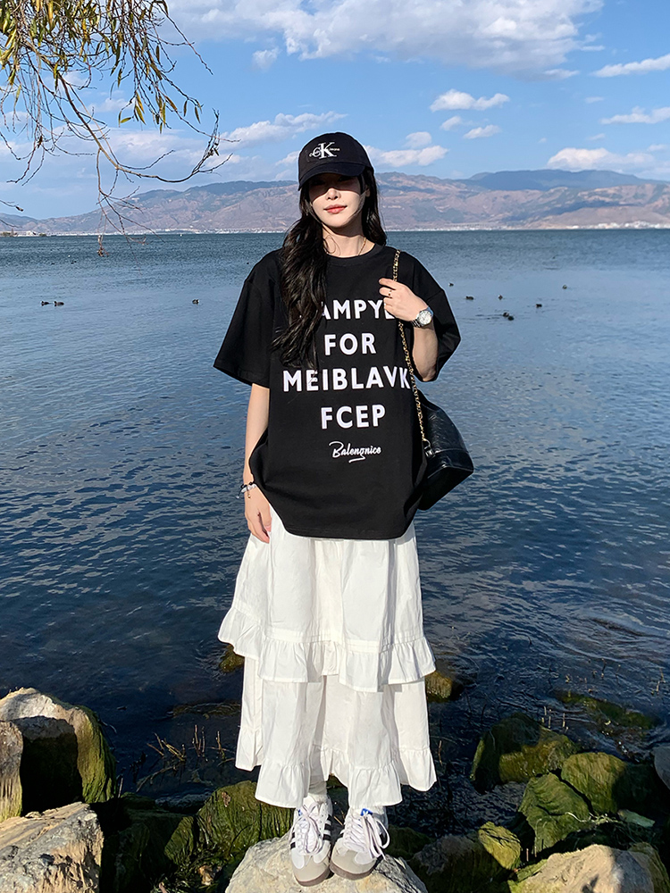 Elevate your summer wardrobe with our Trendy Women’s Loose Short Sleeve T-shirt featuring a stylish letter print, perfect for embracing the Y2K vibe and casual chic styles of 2025. This versatile top offers a relaxed fit that flatters every body type, making it an ideal choice for warm days out or cozy evenings in. Crafted from lightweight fabric for maximum comfort, it pairs effortlessly with jeans, shorts, or skirts. Don’t miss out on this must-have piece add to your cart today!