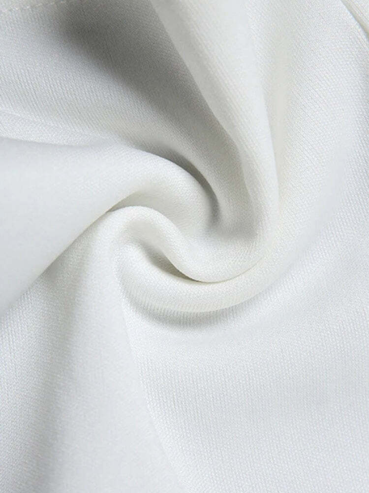 This tube top and mini skirt set is all about sleek drama. Featuring a body-hugging bandeau top and ruched skirt with floor-length sheer panels, this look turns heads from every angle. Perfect for parties, nights out, or statement-making moments.