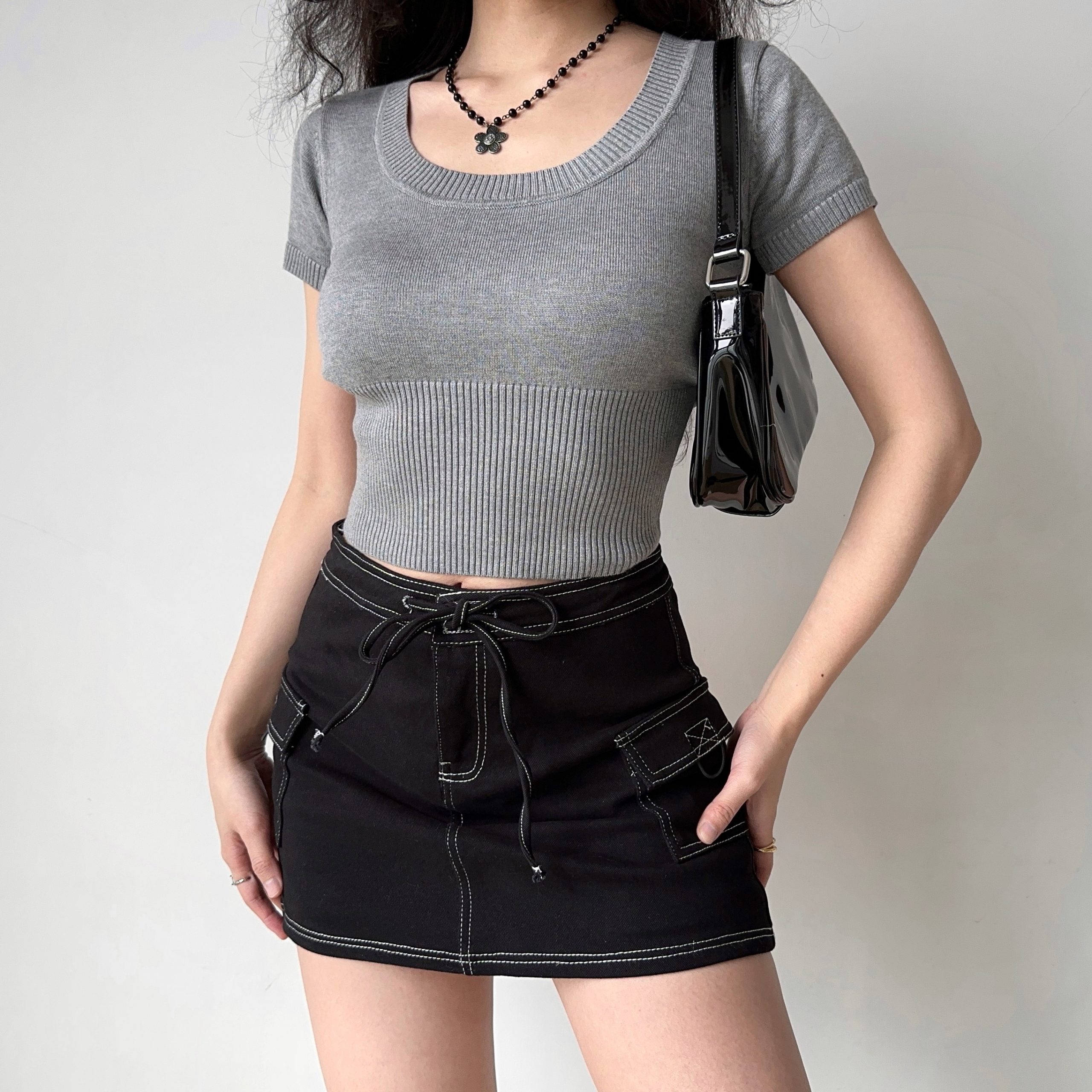 U Neck Ribbed Knit Short Sleeve Women Summer Slim Fit TopEuropean, Casual High-quality product featuring casual summer outfits, easy halloween costume, vacation outfits and more. Modern design that fits the latest trends. Premium materials ensure durability and comfort. Order now for special offers! Product designed with attention to every detail. Suitable for all occasions and personal styles.