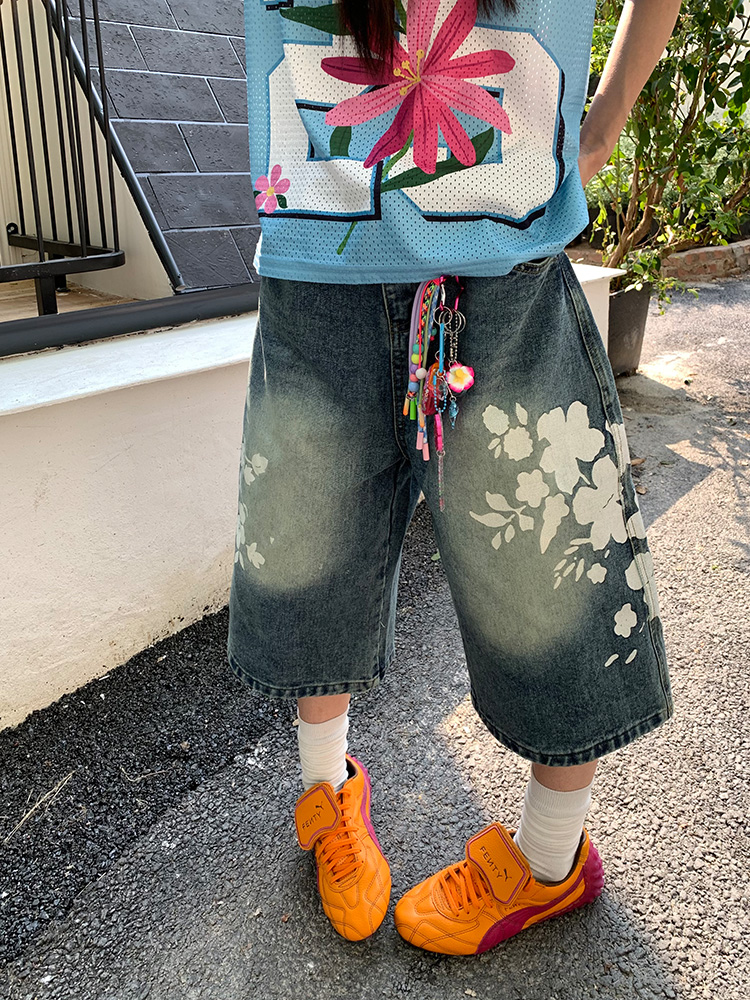 Unisex Floral Print Washed Denim Shorts Summer Straight Loose Wide Leg Seven Point Pants High-quality product featuring spring outfit, spring outfits, casual summer outfits and more. Modern design that fits the latest trends. Premium materials ensure durability and comfort. Order now for special offers! Product designed with attention to every detail. Suitable for all occasions and personal styles.
