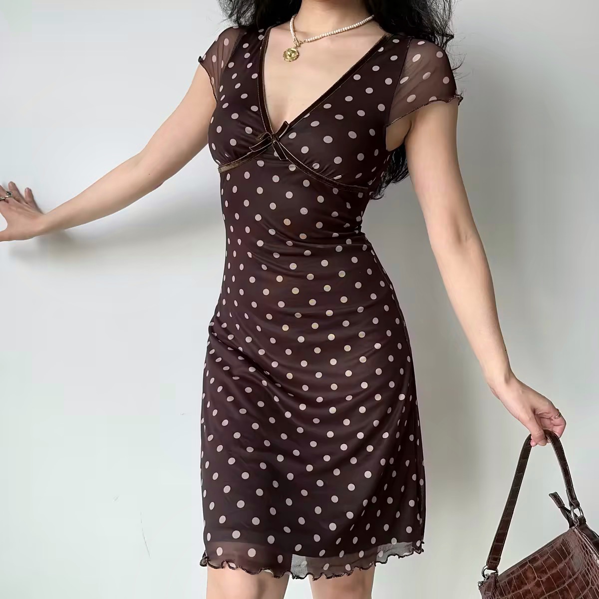 V- Neck Polka Dot Short Sleeve Dress Women Slim A Line Skirt, Y2K High-quality product featuring skirt outfits, coquette outfit, hoco dresses and more. Modern design that fits the latest trends. Premium materials ensure durability and comfort. Order now for special offers! Product designed with attention to every detail. Suitable for all occasions and personal styles.