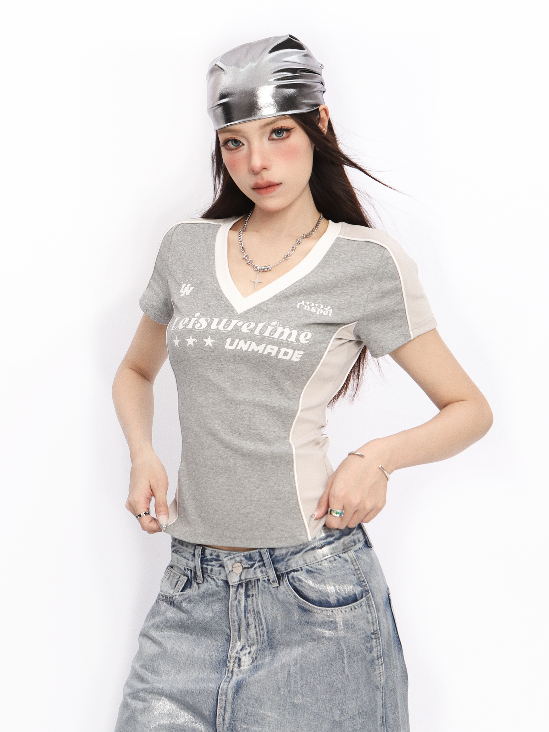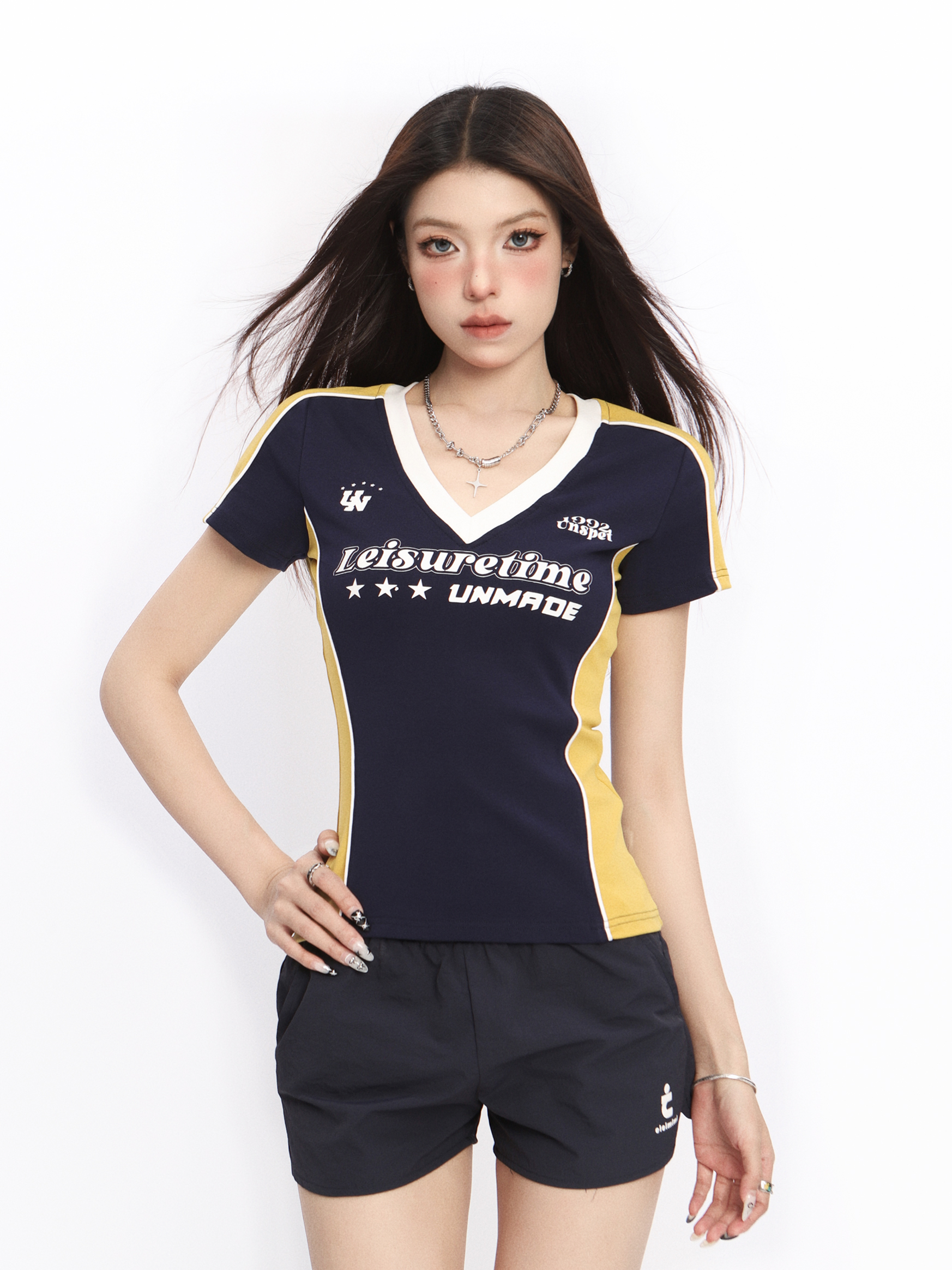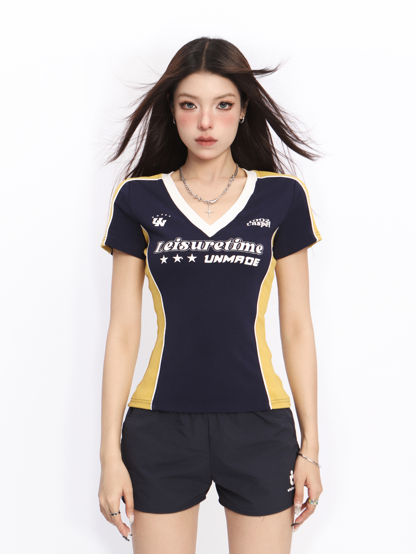 Elevate your summer wardrobe with our V-Neck Shoulder-Structured Short Sleeve T-Shirt for Women, designed in a flattering slim-fit that accentuates your curves. This stylish top features a trendy Y2K-inspired design, perfect for the spicy girl looking to make a statement. Its comfortable fabric and structured shoulders provide both support and style, making it an ideal choice for any casual outing or festival. Don’t miss out on this versatile piece add it to your cart and step out in confidence!