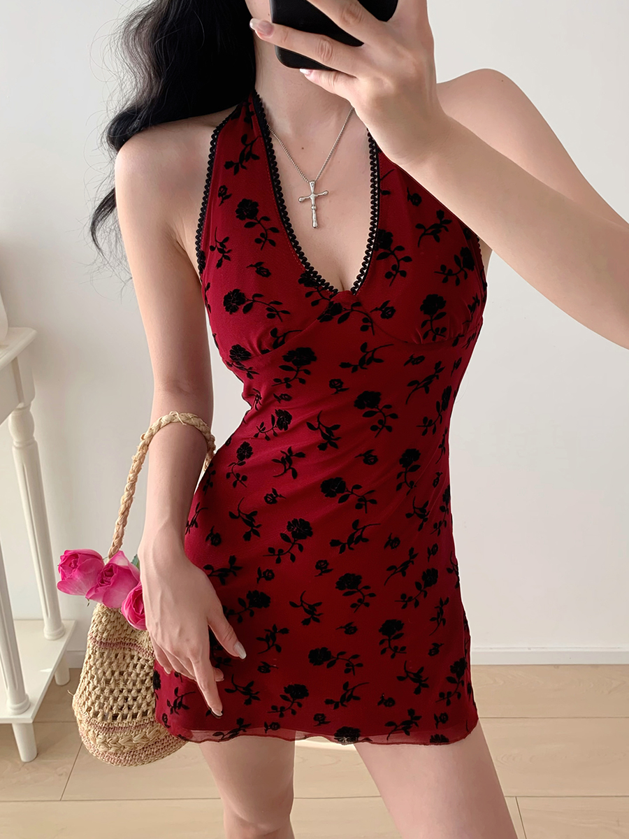 V- Neck Wine Red Floral Tie Neck Sling Dress Girl Women, Pired – Hoco Dresses