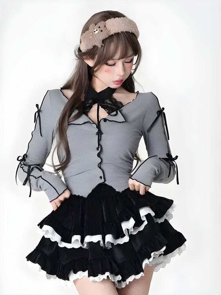 Velvet Ruffle Layered Mini Skirt High-quality product featuring little red riding hood costume, outfit ideas, pretty outfits and more. Modern design that fits the latest trends. Premium materials ensure durability and comfort. Order now for special offers! Product designed with attention to every detail. Suitable for all occasions and personal styles.
