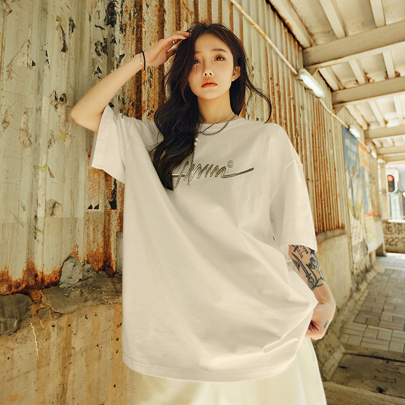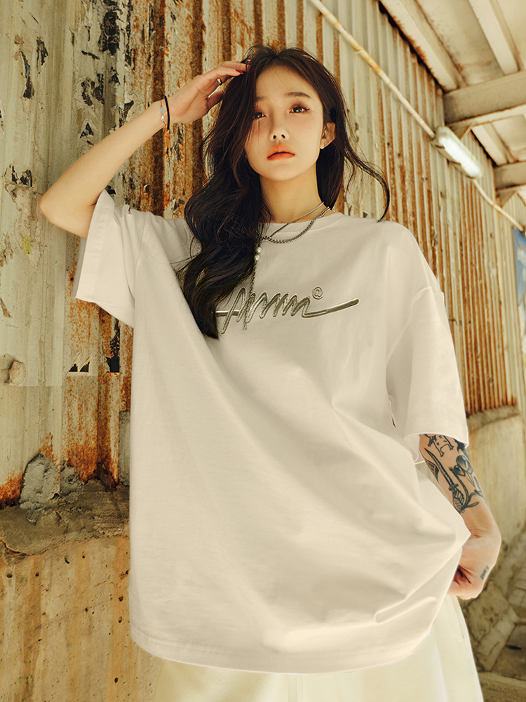Vintage Streetwear Letter Embroidery Short Sleeve Heavyweight Loose Fit – Summer Fits