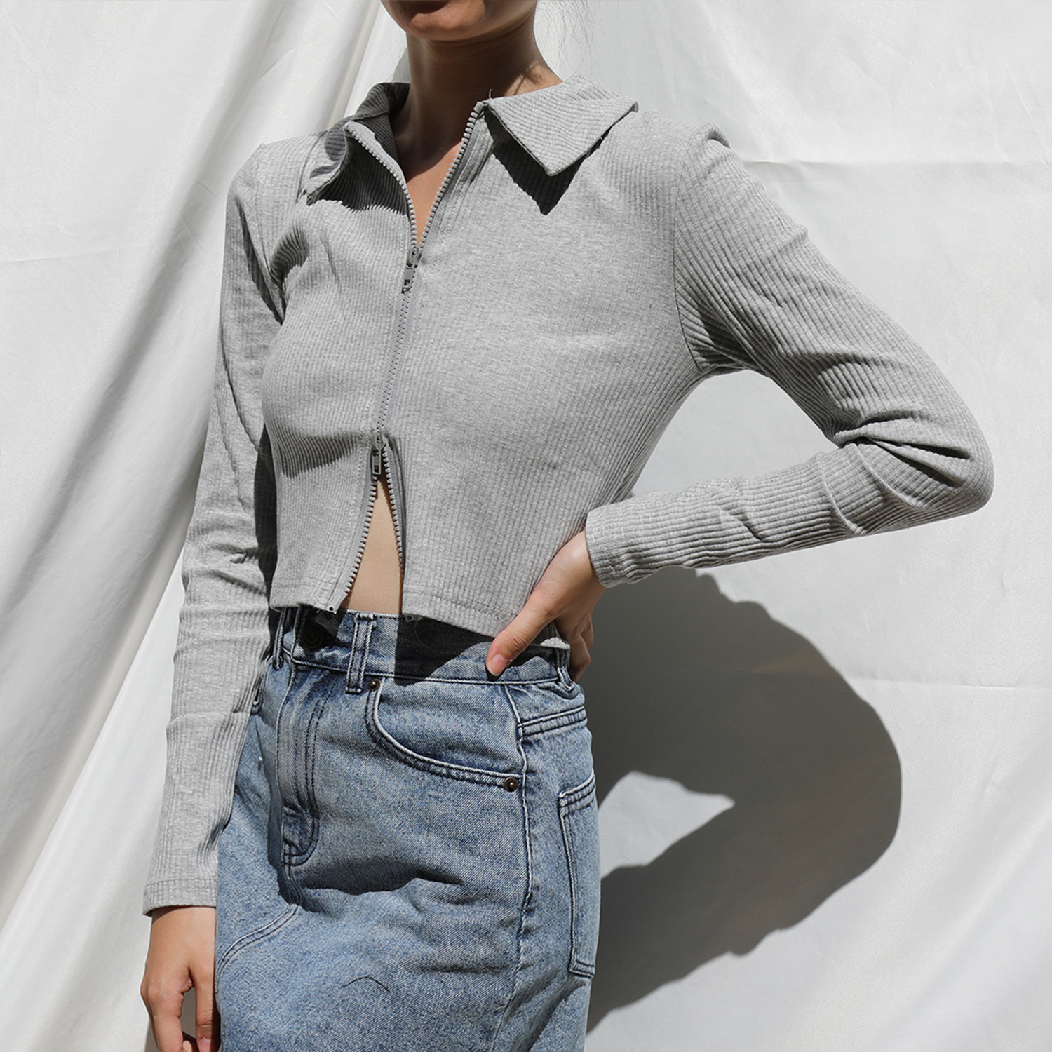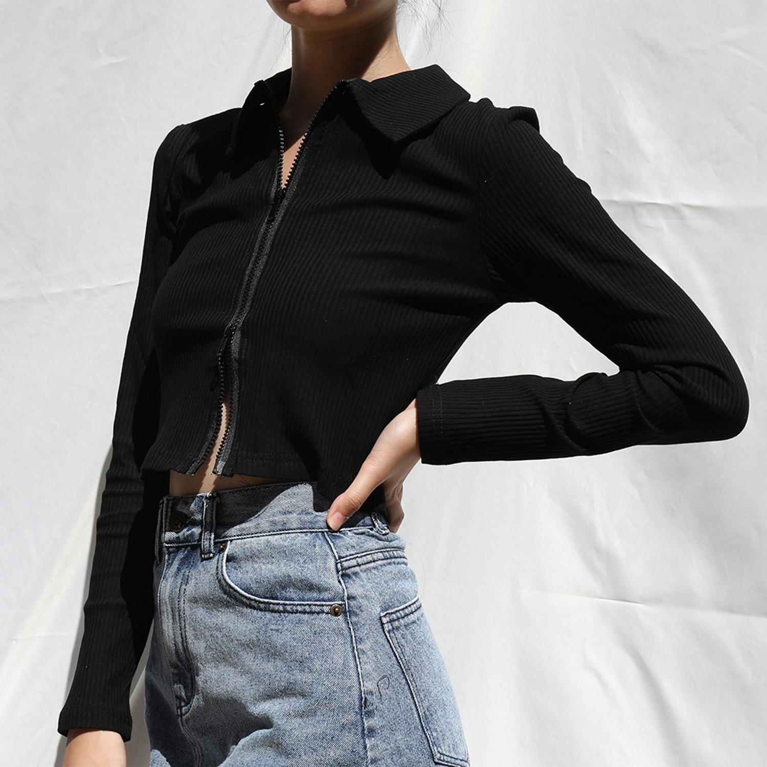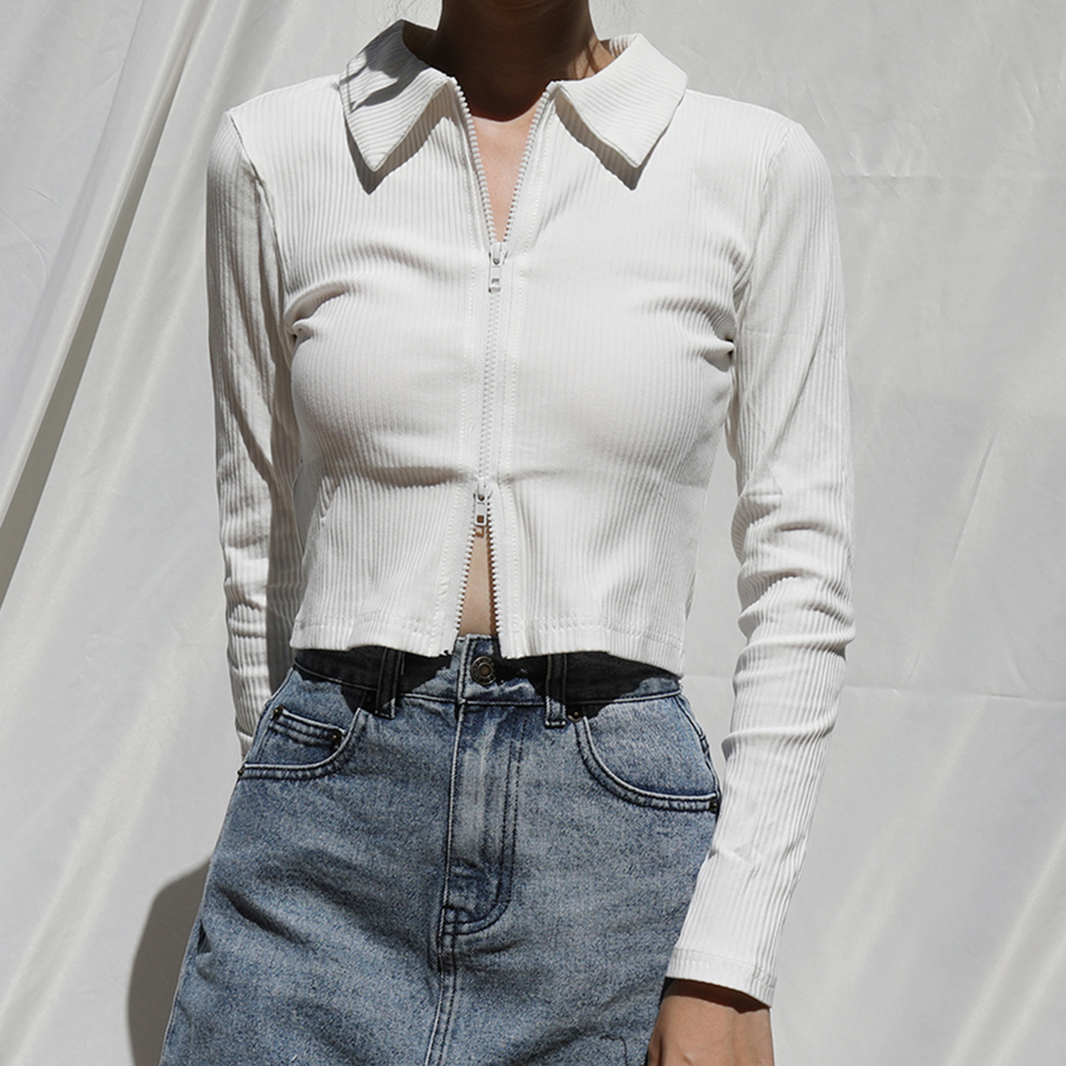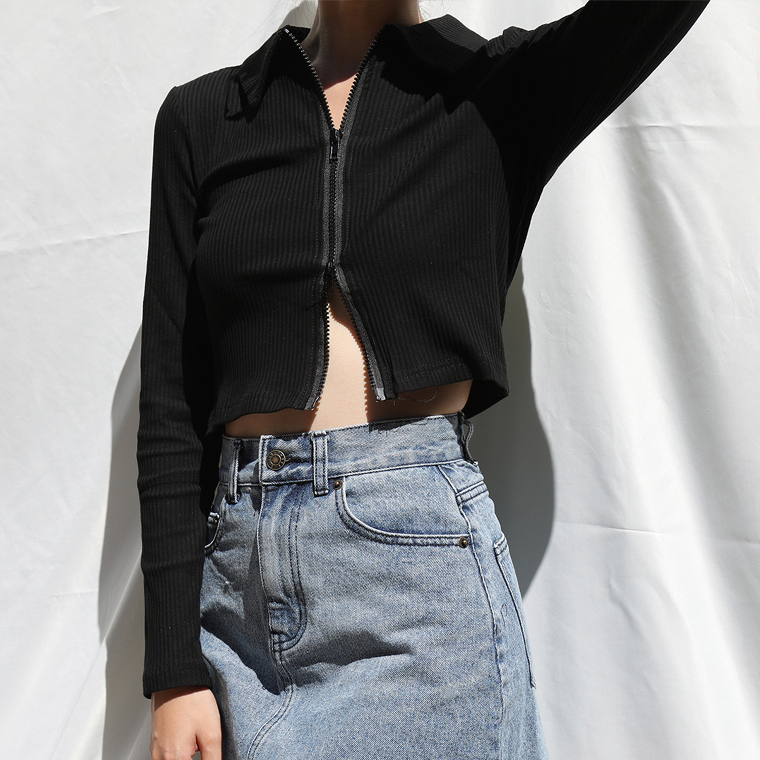 Vintage High Waisted Ribbed Long Sleeve Cardigan Double Head Zippe – Graduation Dress