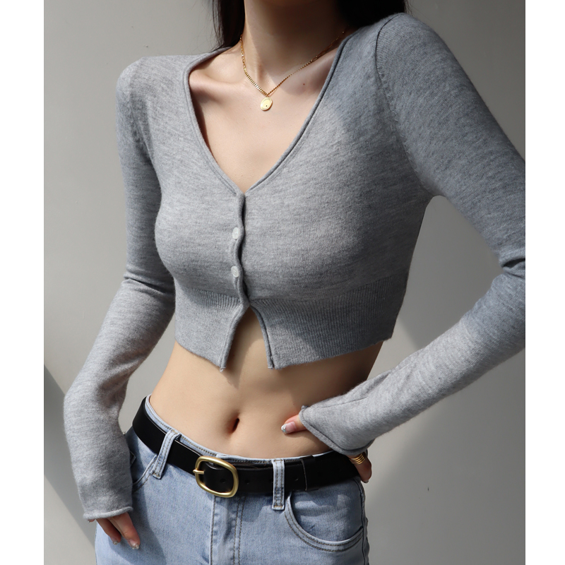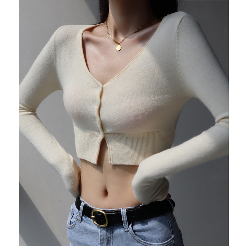 Elevate your wardrobe with our Vintage American Style Sexy V-Neck Button High-Waisted Short Cardigan, designed for the modern woman who loves a flattering silhouette. This slim-fit knitted top features long sleeves and a chic V-neckline, making it the perfect layering piece for any occasion. Embrace style and comfort while accentuating your figure add this must-have cardigan to your cart and redefine your fashion game today!