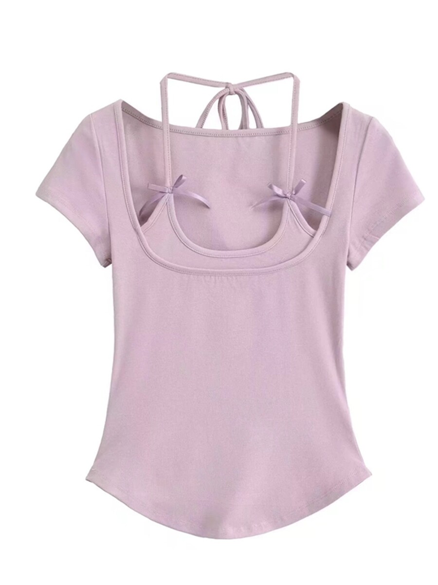Vintage Bow Tie Elastic Slim Fit Short Sleeve Women Diy Spring Summer – Spring Outfit