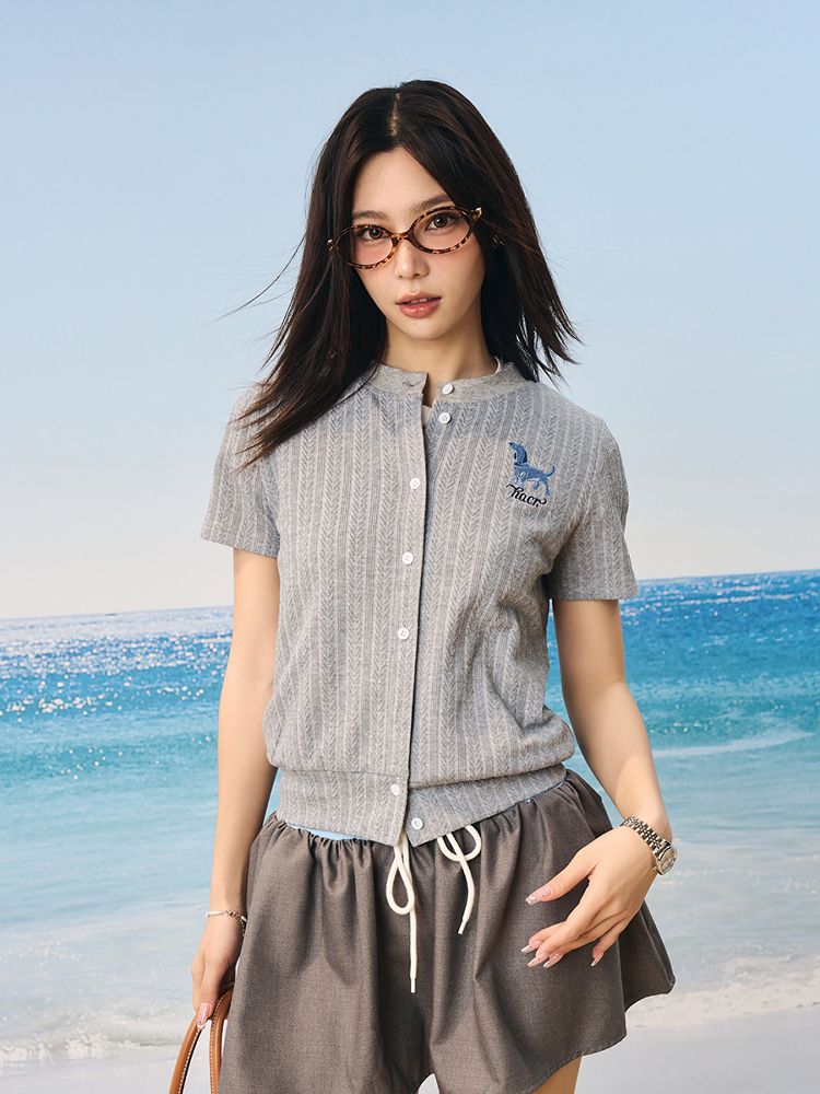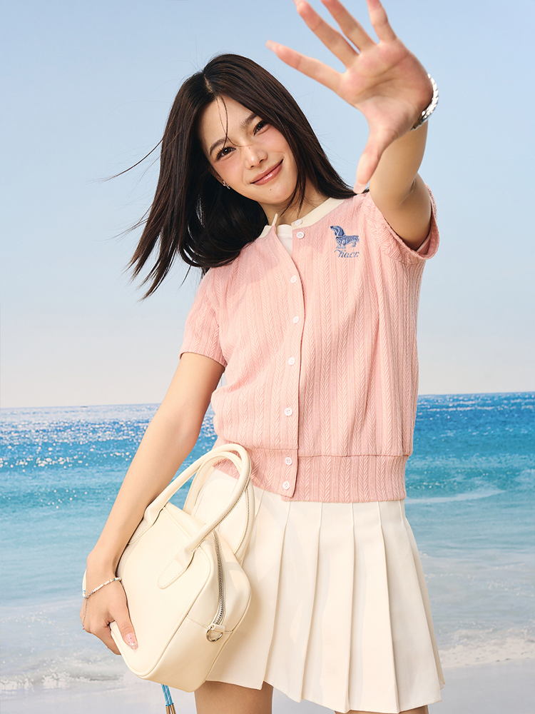 Vintage British Lightweight Twisted Short Sleeve Cardigan Small Dog Emb – Summer Fits