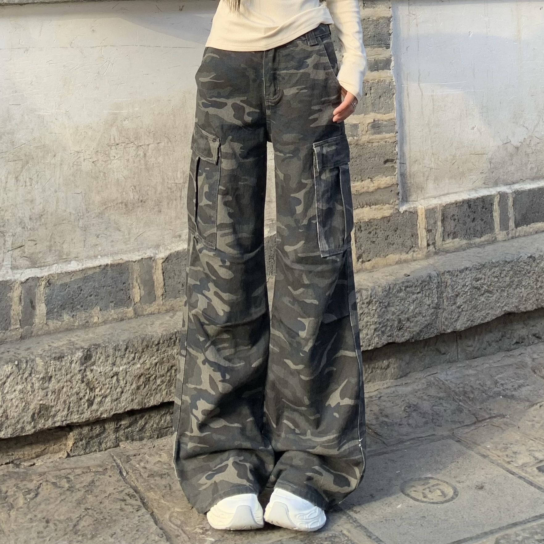 Vintage Camouflage Cargo Pants Women, Multi Pocket Loose Straight Wide Leg, pired High-quality product featuring spring outfit, leather pants outfit winter, western outfits women and more. Modern design that fits the latest trends. Premium materials ensure durability and comfort. Order now for special offers! Product designed with attention to every detail. Suitable for all occasions and personal styles.