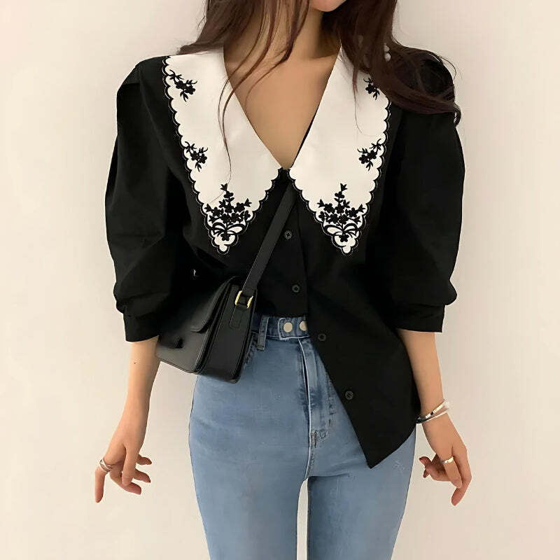 Vintage Embroidered Collar Shirt High-quality product featuring spring outfit, 90s fashion, dream clothes and more. Modern design that fits the latest trends. Premium materials ensure durability and comfort. Order now for special offers! Product designed with attention to every detail. Suitable for all occasions and personal styles.