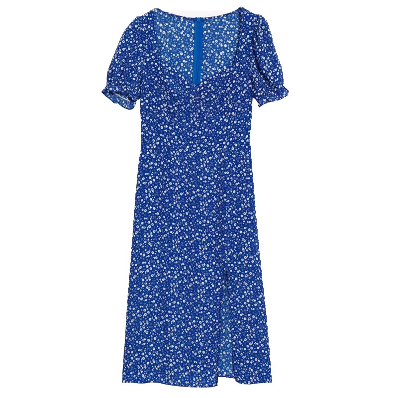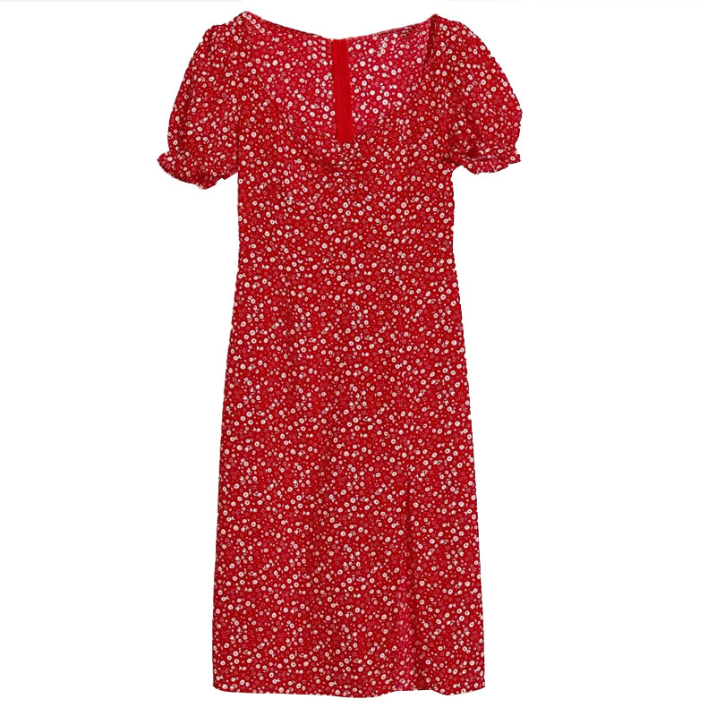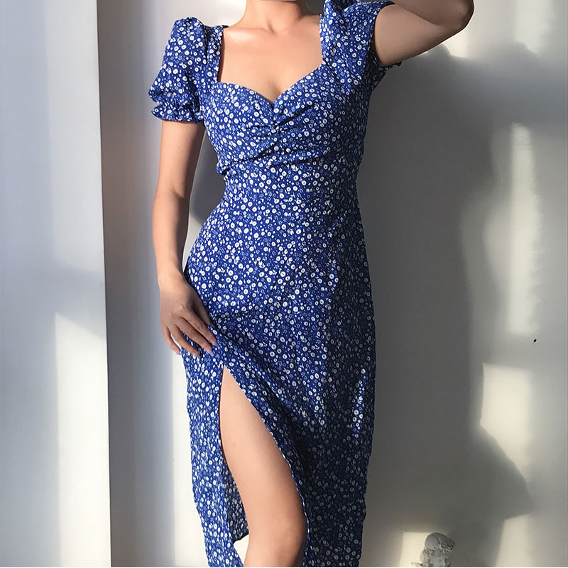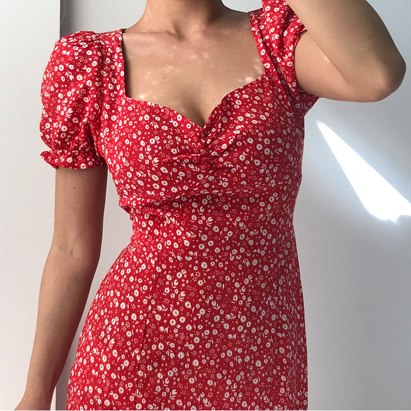 Vintage Floral Cottage Dress Square Neck, Pleated, Puff Sleeves, Side S – Y2k Outfits