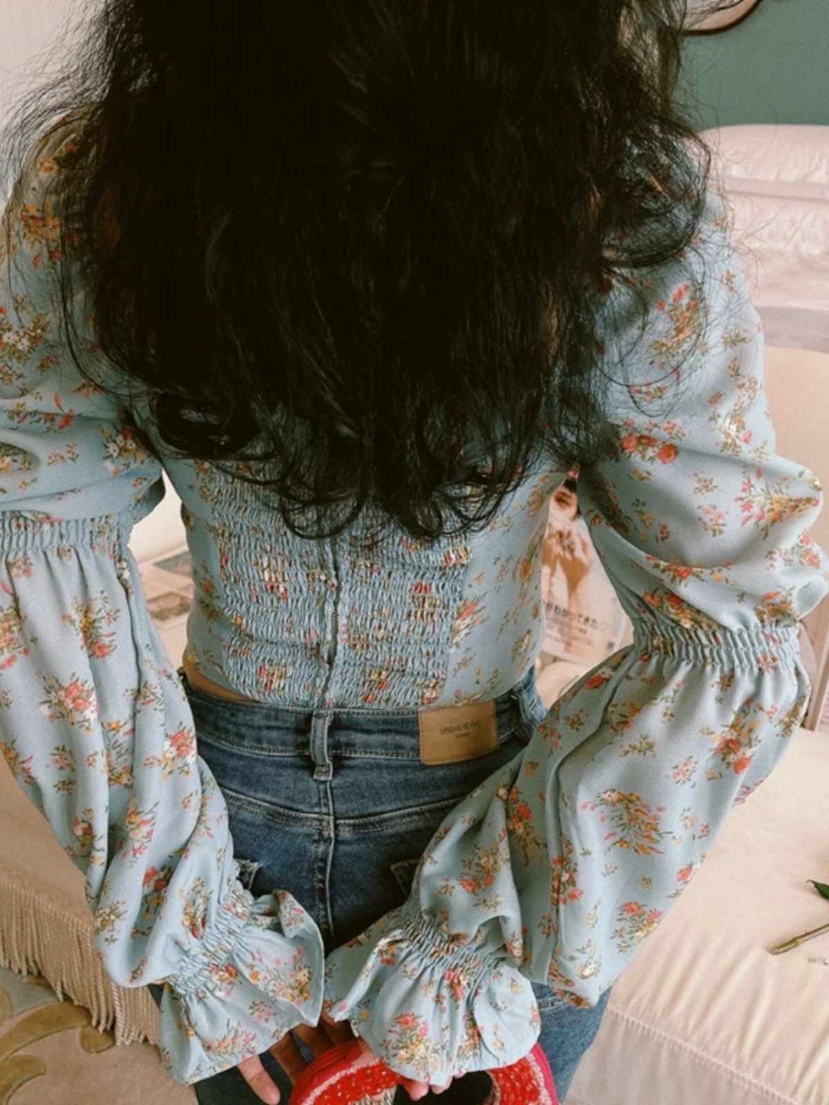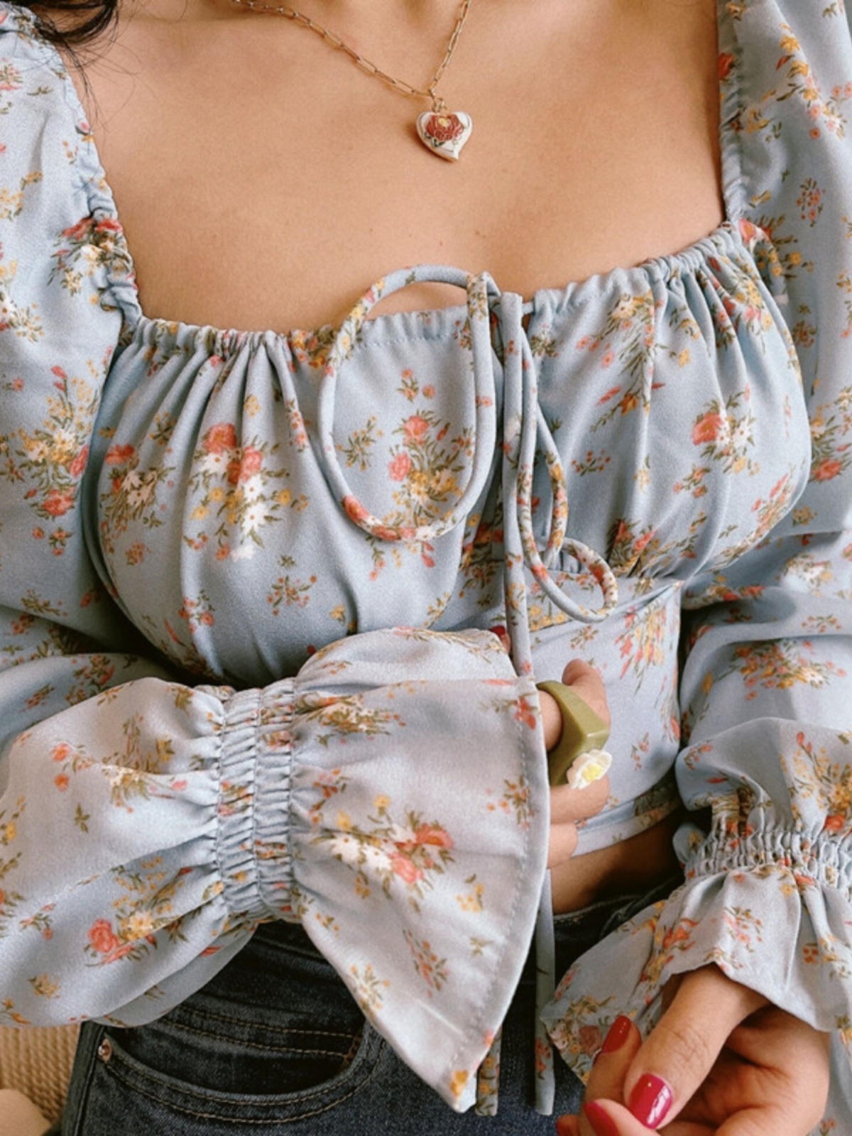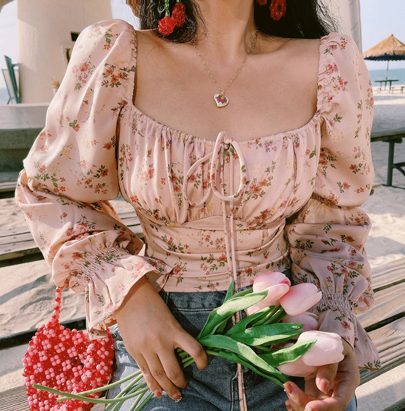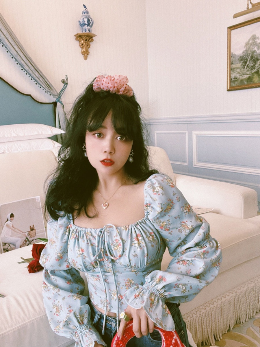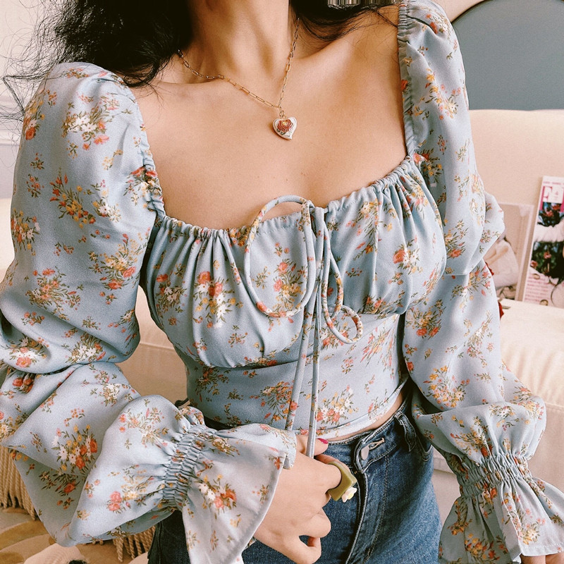Vintage Floral Puff Sleeve Shirt Square Neck Autumn Waibaring Top Y2k P – Y2k Outfits