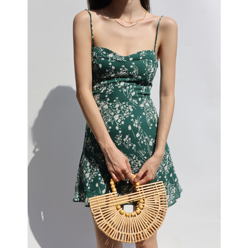 Vintage Floral V- Neck DressGreen Thin Straps, Fitted Ruffled Hem, Short Summer High-quality product featuring spring outfit, fall fits, vacation outfits and more. Modern design that fits the latest trends. Premium materials ensure durability and comfort. Order now for special offers! Product designed with attention to every detail. Suitable for all occasions and personal styles.