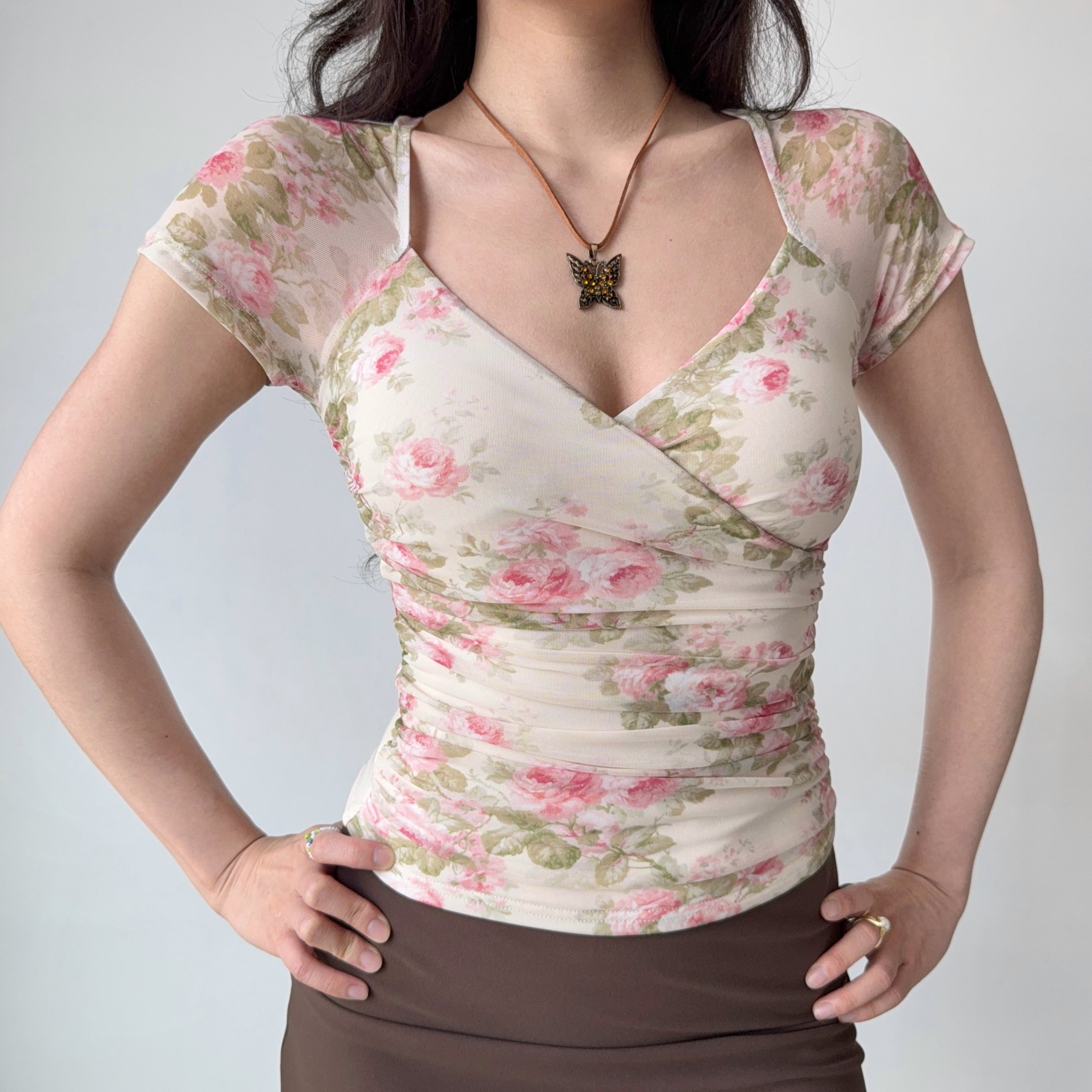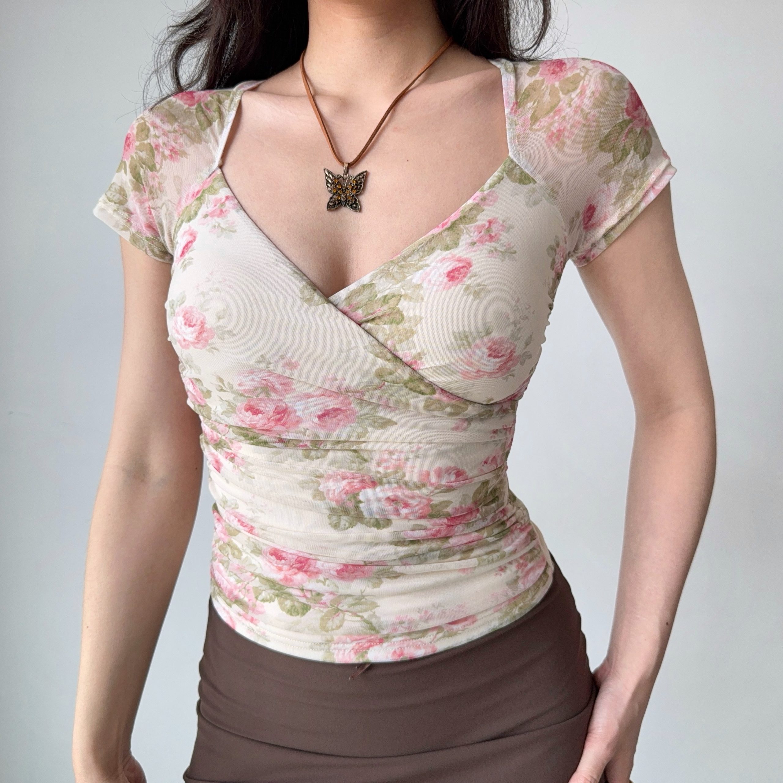 Vintage Pired Diy Cross V- Neck Low Cut Mesh Short Sleeve Wo – Diy Costumes for Women